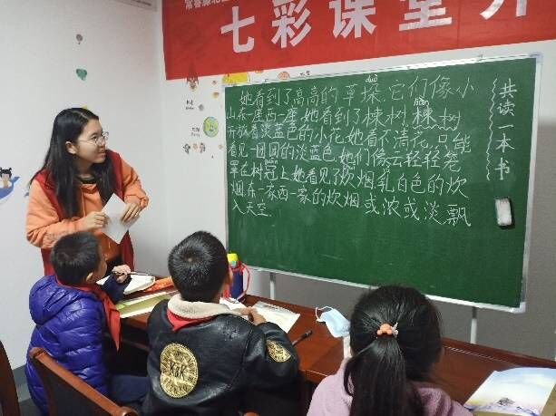 本期课程分两天进行,分别为知识拓展类和素质培养类教育活动。在进行本次课堂活动前,志愿者精心为小朋友们设计、布置好了教室,希望可以结合自己的专业所学,给孩子们带来不一样的课堂体验。13日上午,“七彩课堂”准时开课,志愿者们先后开展了“共读一本书”、“童真看世界”、“56个民族系列阅读”等知识拓展类活动,与小朋友们结成学习伙伴,克服阅读过程中的生字、难字,共同探寻文学作品中的风景文化、民族民风、区域特色,以自己的专业知识开拓孩子们的视野;14日开展了“见字如面”、“舞蹈精灵”、“育德书画”等素质培养类活动,志愿者组织小朋友们进行舞蹈形体训练、绘画展示以及硬笔书法练习,在陪伴中指导大家遇见更好的自己,并在课后将成果分享给孩子们的父母。活动进程中,孩子们一次次绽放出开心的笑颜,非常积极地参与到课堂学习中来,首次开课便得到了孩子们的喜爱以及家长们的充分认可与一致好评。