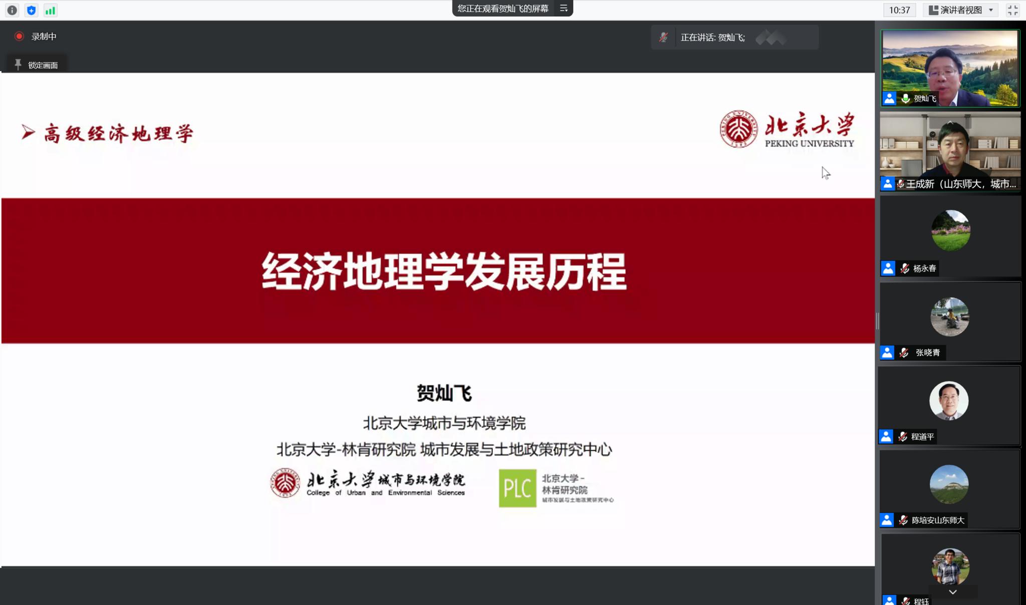 11月7日,应学院邀请,北京大学城市与环境学院院长贺灿飞为学院师生作了题为“经济地理学发展历程”的学术报告。报告由学院院长王成新主持,通过腾讯会议平台线上举行。兰州大学资源环境学院杨永春教授、地环学院副院长张晓青教授、商学院工商管理系主任程道平教授、地环学院程钰教授等出席会议,学院师生230余人参加会议。
