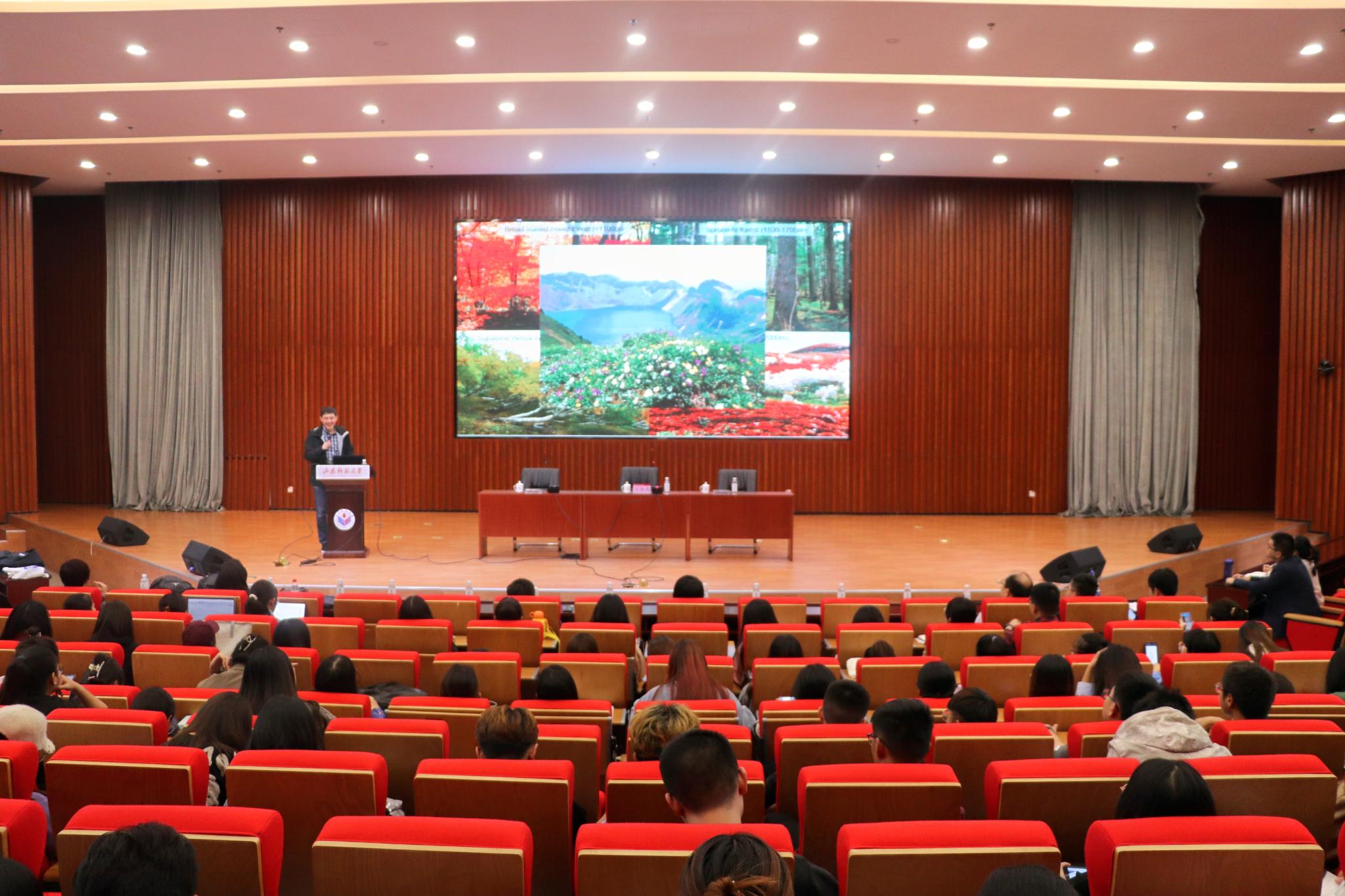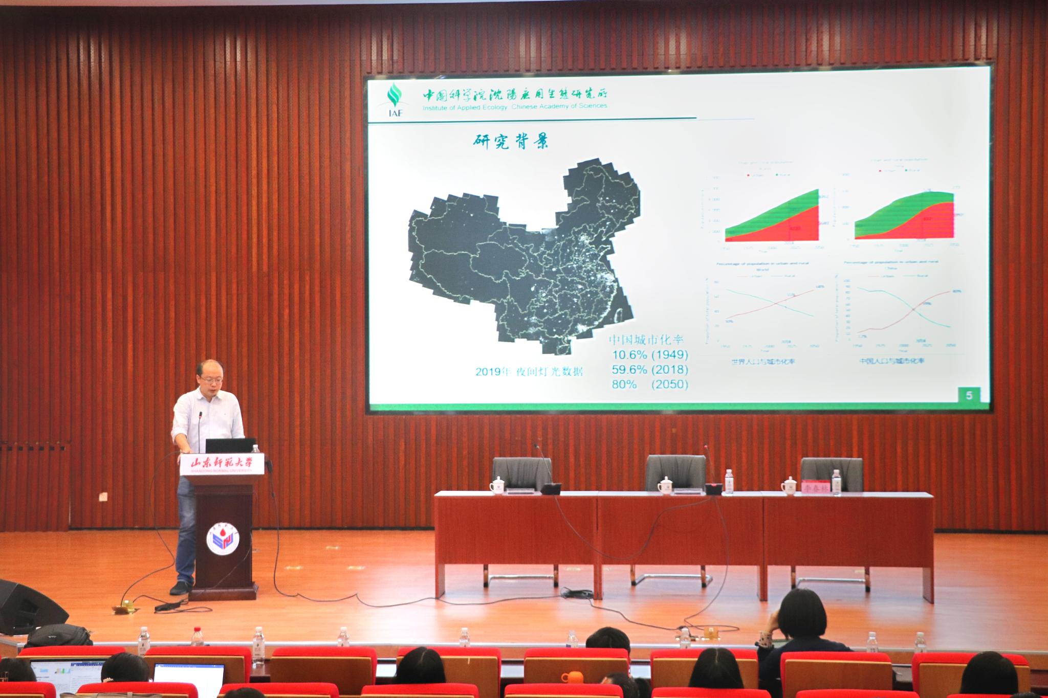 王绪高从在长白山进行的学术研究出发,概括了生物多样性的层级,从多角度分析了生物多样性的维持方式,提出了生物多样性的生态功能。随后,李春林介绍了新视野下的大尺度生态学、地理学、环境学研究方法,在水环境管控方面,他指出,可以通过无人机水面采样得到城市径流的特点,从而获得了预测的内涝点,为城市防洪治理提供重要依据;在城市大气环境方面,他提到,各时期交通和建筑相关的变量都是影响城市PM2.5浓度的主要因素,这愈发凸显了当下对于环境系统研究的重要意义。李春林还强调,应用生态学研究的最终目的是要服务城市与区域生态安全,随后他从气、热、生、土、水几个方面详细介绍了区域生态安全,并提出了研究思路。报告最后,王成新进行总结,他希望同学们认真学习两位老师所具备的质疑、创新精神,勇于实践,并鼓励大家在地理学领域学好专业基础知识,为今后深入研究、拓展课题打下坚实基础。