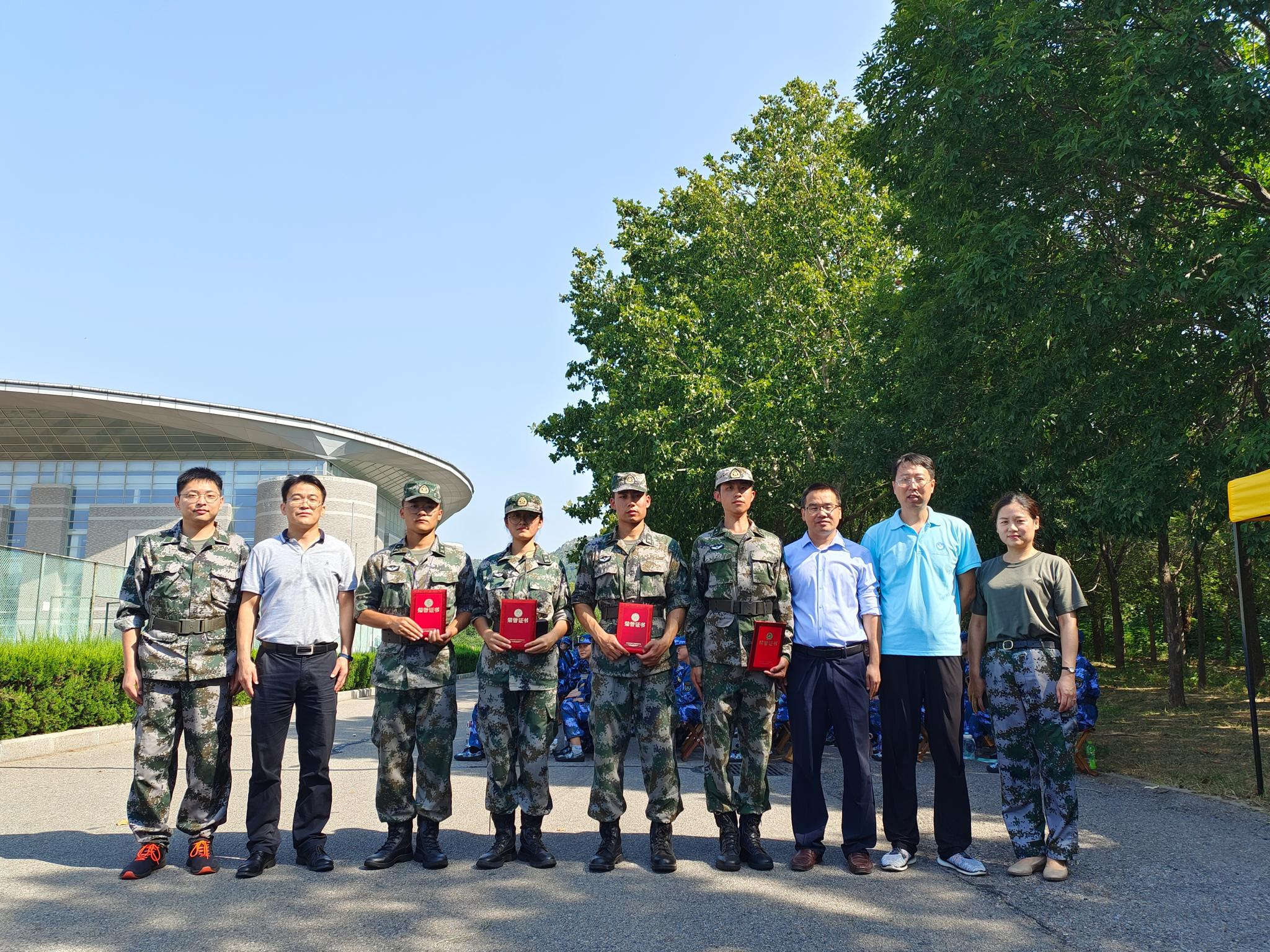 首先,李山峰转达了学院党委对承训教官的诚挚感谢和亲切慰问,对教官给予学院军训工作支持表示衷心的感谢。高度赞扬了承训部队乐于奉献、服务大众的精神和纪律严明、科学有序的工作作风。他指出,军训是同学们树立正确的爱国主义观、理想信念观和集体主义观的重要一课,希望承训教官们严格科学施训,引导同学们养成良好的学习习惯和生活作风。穆新伟在慰问时提到,希望教官们劳逸结合,以饱满的精神投入到训练工作中,确保军训任务圆满完成。慰问过程中,领导老师们为教官颁发证书与慰问礼品。李妮娜代表学院团委表示,学院学工团队也会时刻关注大家的训练情况,为同学们的集训提供支持与保障。