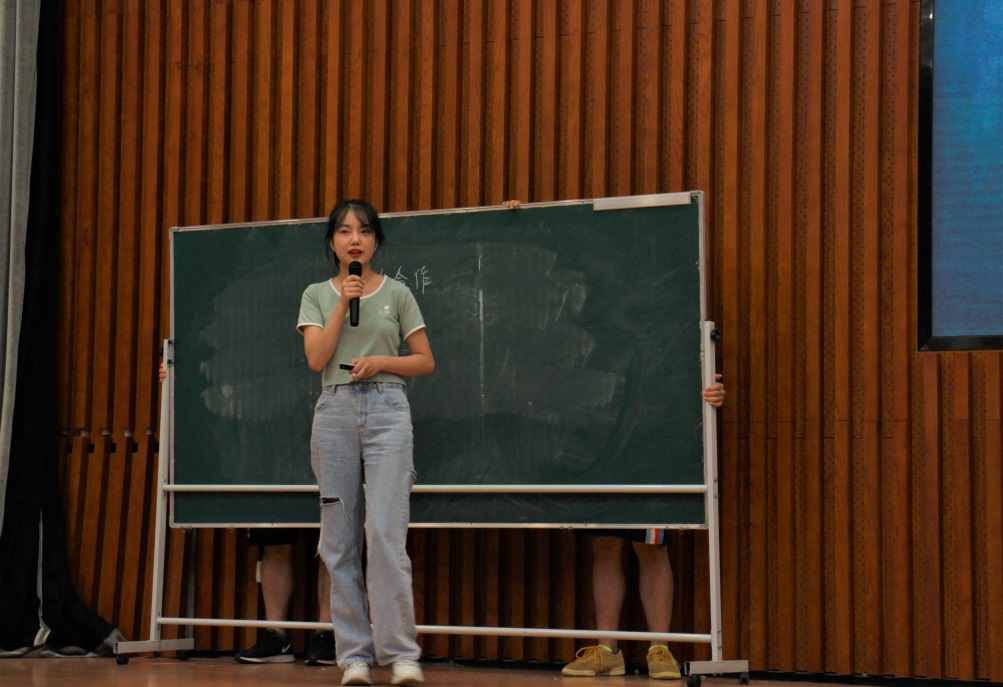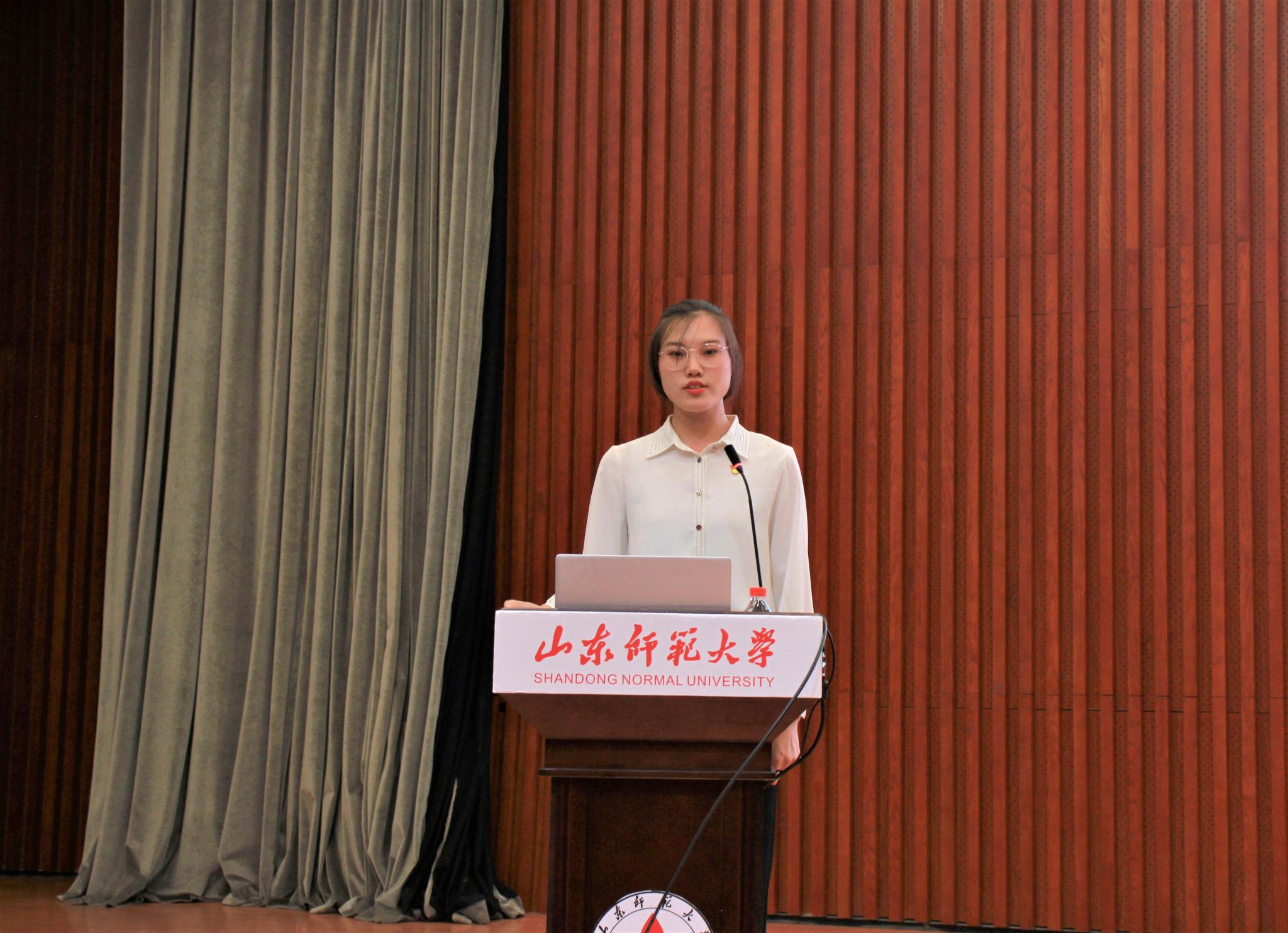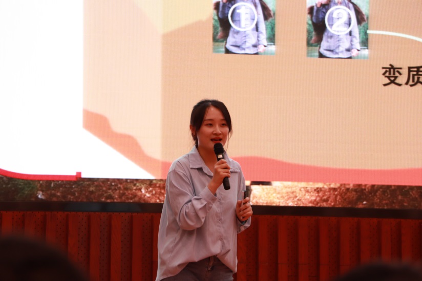 地卓本1801班王丹代表同学代表全体师范生发言,她感谢学校提供实习平台,也感谢学院领导、老师对自己的悉心指导。通过教育实习,她和全体师范生一样,更加明白了作为一名当代教师所要肩负的责任。她也希望同学们能够不忘初心,跟随时代的脚步,相信自己,满怀热情地投入到以后的学习和工作当中,成长为更优秀的自己。