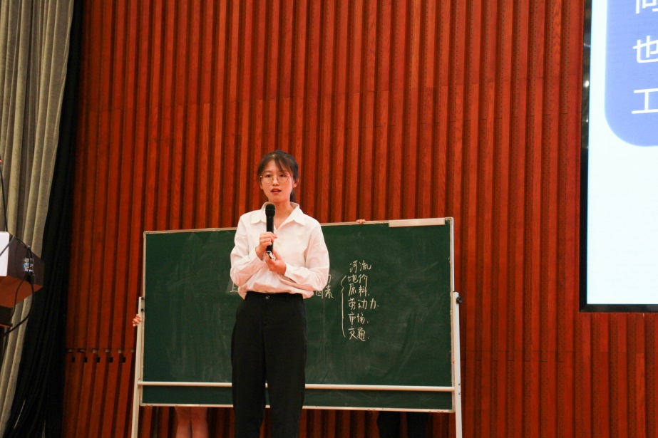 翟天泽、王聪、夏淑慧三位同学进行了现场模拟授课汇报,分别展示了《工业区位因素——以上好佳为例》《岩石圈的物质循环》《发展与合作》三堂微格课程,学院副院长郭笃发教授对示范课程进行了点评指导。