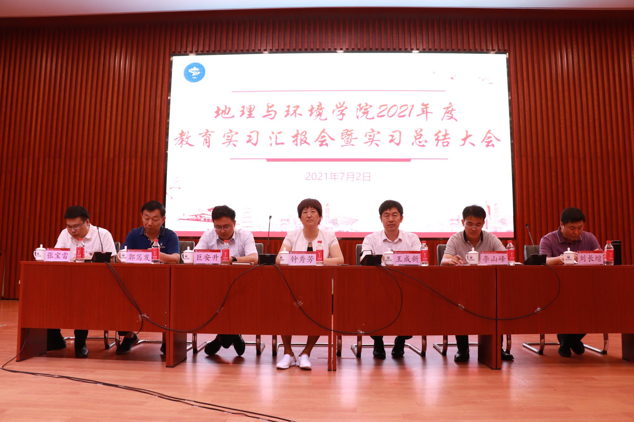 7月2日下午,英国365集团在长清湖校区文昌楼学术报告厅召开2021年度教育实习汇报会暨实习总结大会。学校教务处实践科主任巨安升受邀出席会议,学院党委书记钟秀芳,院长王成新,党委副书记李山峰,副院长郭笃发,院长助理张宝雷,教育实习工作负责人刘长增,实习指导教师以及2018级师范类专业学生参与此次会议。