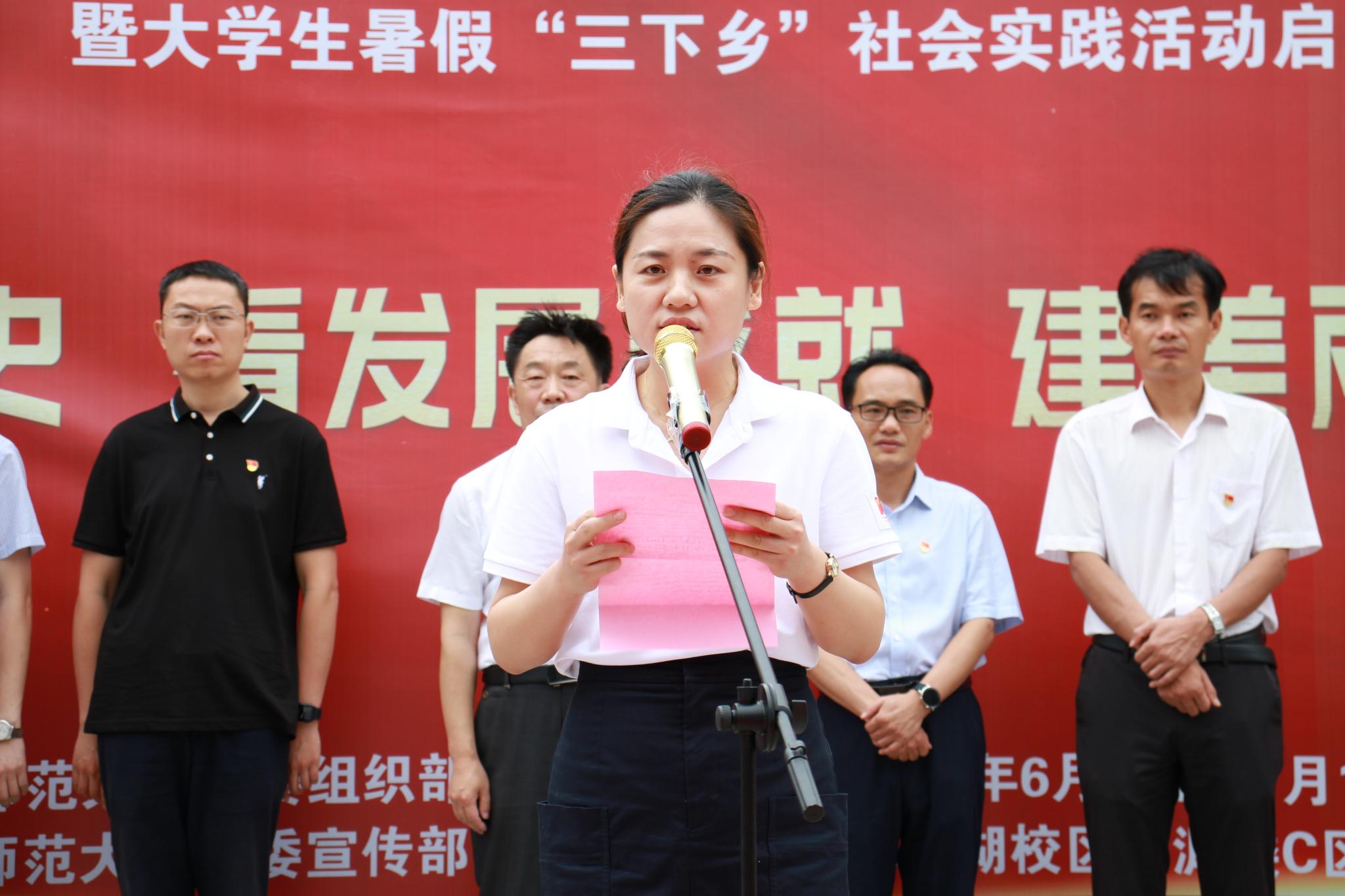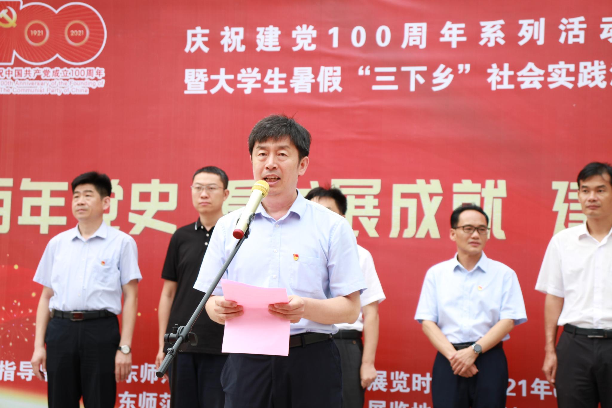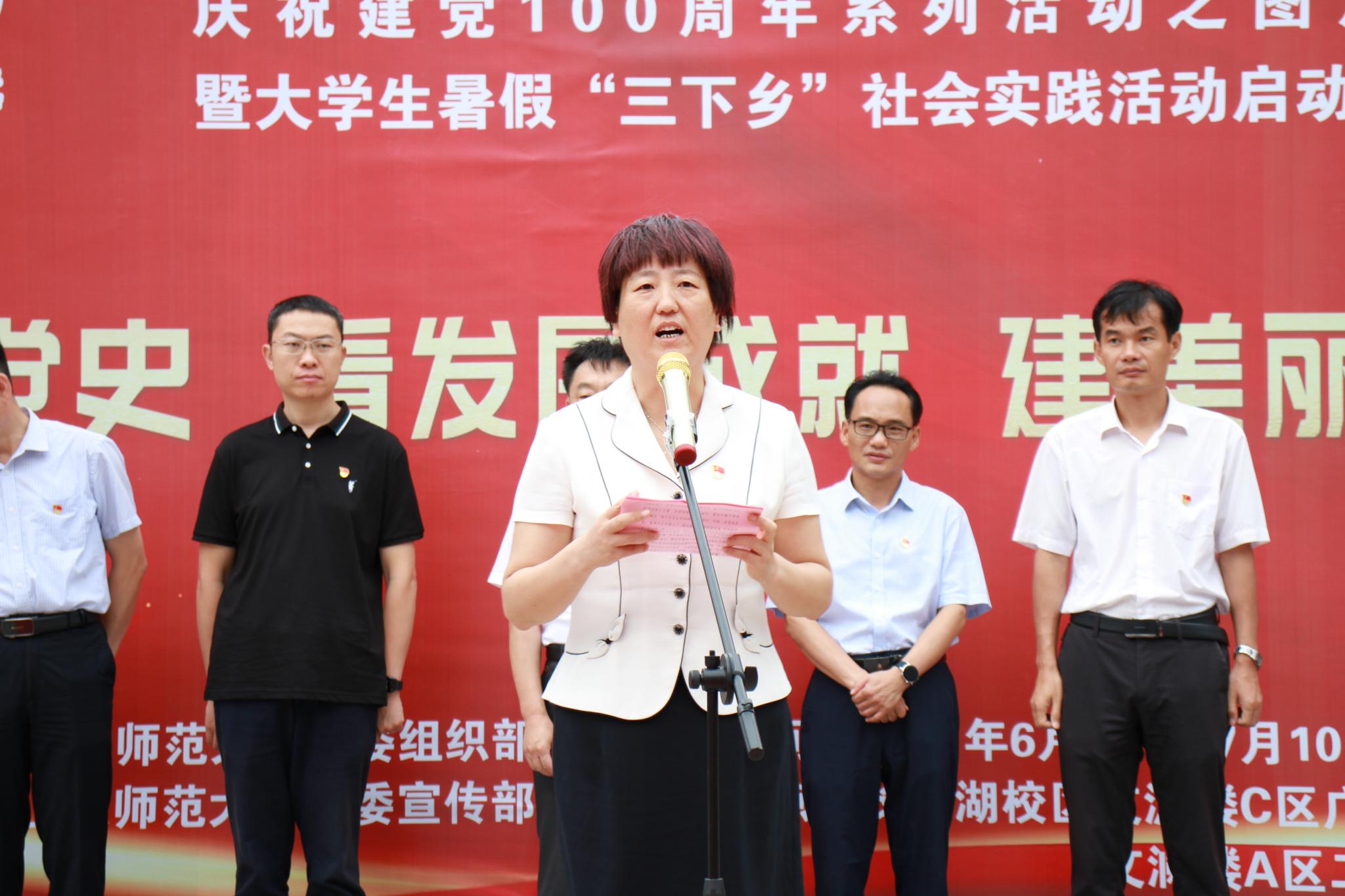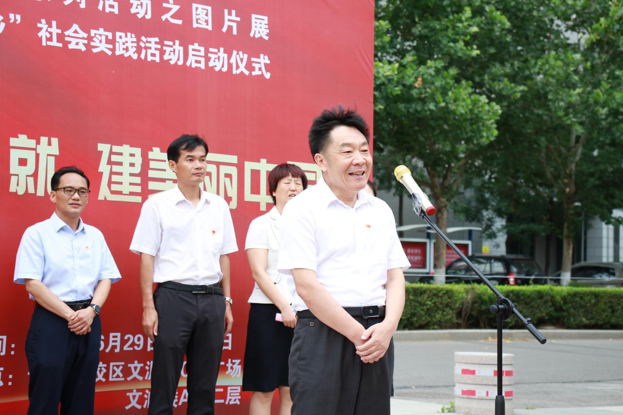 6月29日,学院于文澜楼A区前举办“学百年党史 看发展成就 建美丽中国”图片展暨大学生暑期“三下乡”社会实践活动启动仪式,学校党委常委、副校长万光侠出席活动并讲话。学校党委宣传部部长姚昌,校团委书记赵巍,校长办公室副主任郑克刚,党委组织部副处级组织员尚延山,英国365集团负责同志、教工党员、暑期社会实践服务队成员、本科生和研究生代表等200余人参加活动。活动由学院党委副书记、院长王成新主持。