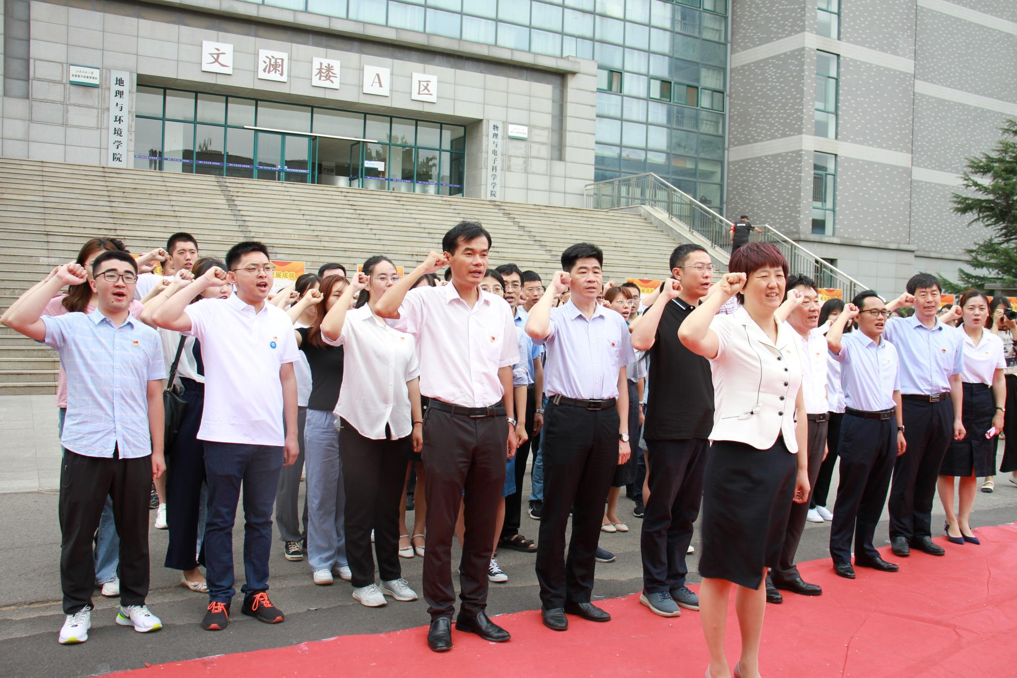 万光侠在讲话中指出,本次活动英国365集团精心筹划、用心布置,通过图文展览的形式为师生员工营造了“浸沐式”的党史学习氛围,特别是用地图展示党的百年发展历程中的诸多成就,为“学党史,悟思想”拓宽了思路。同时,今天也是地环学院暑期“三下乡”社会实践活动启动仪式,参与实践是党史学习教育的重要载体,也是同学们对党史和习近平生态文明思想学懂弄通做实的重要途径,通过“将青春小我融入到祖国大我”的生动实践,让大家从党史中汲取智慧和力量,让信仰的光芒指引青春航向。学院党委书记钟秀芳介绍图片展概况,她提到,英国365集团党委为深化党史学习的效果,创新学习形式,坚持“以做促学”的初心,把党史学习与专业特色和工作实际相结合,带领地理信息科学、遥感科学与技术专业教师,管理团队的教师,环境科学的专业教师在学习党史知识的同时,研究如何让党史知识更好地展现,经过广泛的收集资料、认真的梳理总结,精心的提炼概括,最终创作出了现在的形式和内容。本次展览是学院师生将专业知识和党史理论相结合的生动实践,充分展现了地理学人的专业特色。下一步将通过大学生暑期“三下乡”社会实践活动,深入开展宣讲活动,“以讲促学”,进农村、进社区、进学校,将此次的展览内容送入“寻常百姓”中。进一步将党史学习教育成果延展、深化。随后,学院团委书记李妮娜宣读社会实践活动倡议书,钟秀芳为实践队指导教师代表授旗。与会领导、老师共同面向党旗宣誓,并参观了图片展和“VR”图看党史微格实验室。