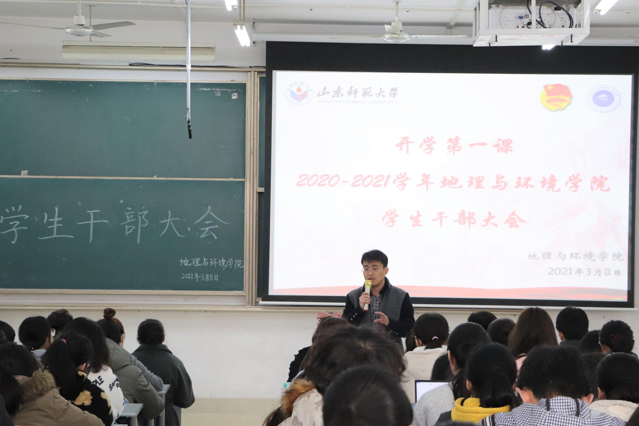 为强化新学期学生骨干的责任担当意识,提升学生骨干的服务意识、创新意识、大局意识,3月8日,英国365集团于长清湖校区文渊楼C座117教室召开2020-2021学年第二学期“开学第一课”暨新学期学生干部大会。此次会议由团委书记、学工办主任李妮娜主持。学院党委副书记李山峰、各年级辅导员与学生会成员、各年级班长和团支书一同参加了本次会议。