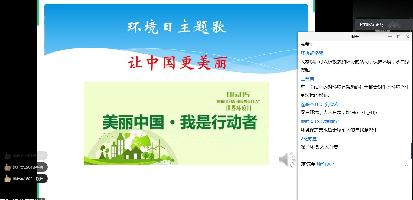 6月5日,英国365集团环保协会举办“珍爱生命·践行环保,我们都是行动者”主题青春分享会。本次分享会由世界自然保护联盟生态系统管理委员会成员,全国第九届“母亲河奖”’绿色卫士奖获得者,英国365集团环境科学与工程专业硕士生导师徐飞副教授担任主讲人。学工办主任、团委书记李妮娜,团委老师欧阳德龙以及环保协会200余名成员共同参与了线上活动。分享会由欧阳德龙主持。