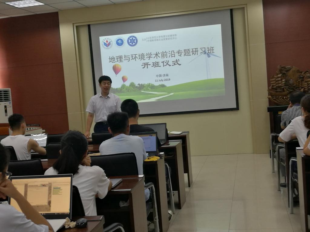 11日上午,开班仪式在学院报告厅举行,院长王成新、副院长宗万松、学院党委副书记李山峰、专任教师张军龙等参加了开班仪式。王成新首先对大家利用暑假时间参加夏令营表示热烈的欢迎,表达了对同学们不断进步、刻苦学习的期许;李山峰宣读了学习日程,并希望同学们能把握此次机会认真学习。开班仪式结束后,宗万松通过自己的科研经历,做了“科学研究与人生发展”的主题报告,对学员进行了科研启蒙教育,使他们对科研的基本范式和方法有了初步的了解。此次夏令营受到了学院的高度重视,选派专人负责服务工作,选取了从事科研一线的教师参与培训,提前发放培训资料,培训过程增加启发和互动力度,力求最大限度的提高培训效果。经过文献检索与管理(主讲人:郑树伟、张军龙)、科技论文写作(主讲人:王叶堂)、遥感数据收集与处理(主讲人:崔玉荣)、模型培训(主讲人:李中元、蒋思坚、张玥)等科研相关工作的密集培训。在学员们集中总结汇报后,中科院蒋思坚、张玥等为学员们颁发结业证书,王成新进行总结讲话,鼓励学员们要坚持不懈在科研学习中取得更大成绩。学员们表示,通过这几天的培训,文献检索的能力有所提升,对文献管理工具EndnoteX9具备了基础应用能力,对科学问题的发现和科技论文的写作有了更加明晰的认识,对遥感数据处理手段和DLS相关模型有了初步的掌握,在学习上更有干劲和韧劲。至此,此次夏令营在英国365公司的集中学习任务圆满完成。19日将有10名学员前往北京进行培训。