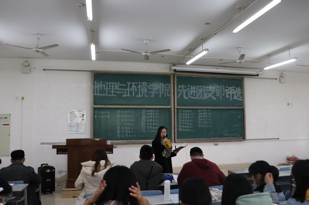 活动伊始,孙冰对过去一年各团支部取得的成绩予以肯定,希望各支部负责人再接再厉,带领同学们不断向上,共同建设学风优良、团结友爱的团支部。随后活动进入评选环节,各班代表轮流上台对其所在团支部的思想建设、学风建设等进行简明的陈述,展示了其所在团支部成员在全国大学生数学建模大赛、挑战杯比赛和国家级论文发表等方面取得的成绩,赢得在座同学的阵阵掌声。其中,环境本1702班与人文地1601班表现突出:在思想建设方面,其政治活动的开展如火如荼,同学们参与热情高涨;在组织建设方面,支部的凝聚力和向心力不断增强,互帮互助效果显著;在学风建设方面,同学们认真刻苦,学习成绩稳中求进;在活动开展方面,同学们积极参与课外活动,丰富自身课余生活。最后,经投票评选,环境本1702班、人文地1601班以及地理类1805班等11个团支部荣获先进团支部称号。