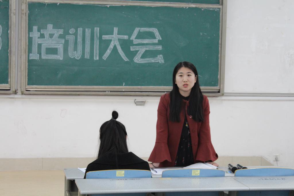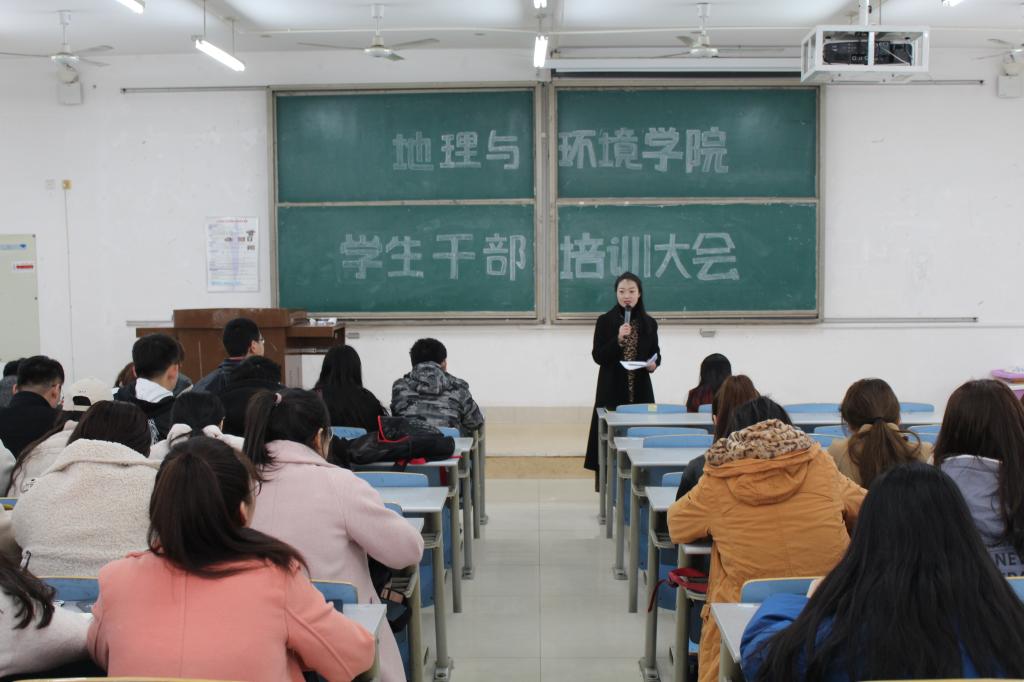 为帮助学生干部更好地开展工作,2月24日下午,我院于长清湖校区文渊楼C座319教室举办学生干部培训大会,团委老师刘莎、孙冰出席本次大会,学院学生会全体成员以及2017、2018级班干部代表积极到场参加。