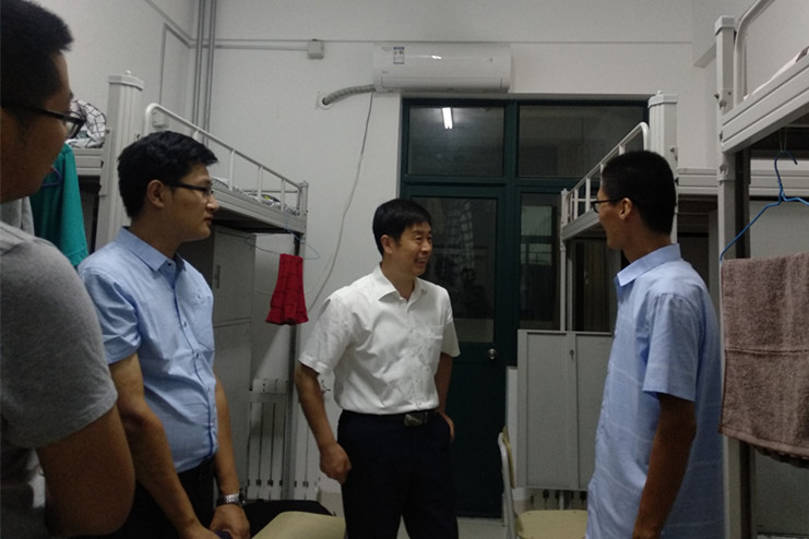 9月2日晚上,学院院长王成新、党委副书记吕洪宾、团委书记李山峰、研究生辅导员高宝棣、学院兼职辅导员刘莎、孙冰带领部分研究生党员、学生干部,走访了新生宿舍。深入宿舍了解新生生活所需,针对长清湖校区生活、选课、入党、就业等新生关注的问题进行了细致解答,并向新生强调了宿舍用电安全和财物安全。
