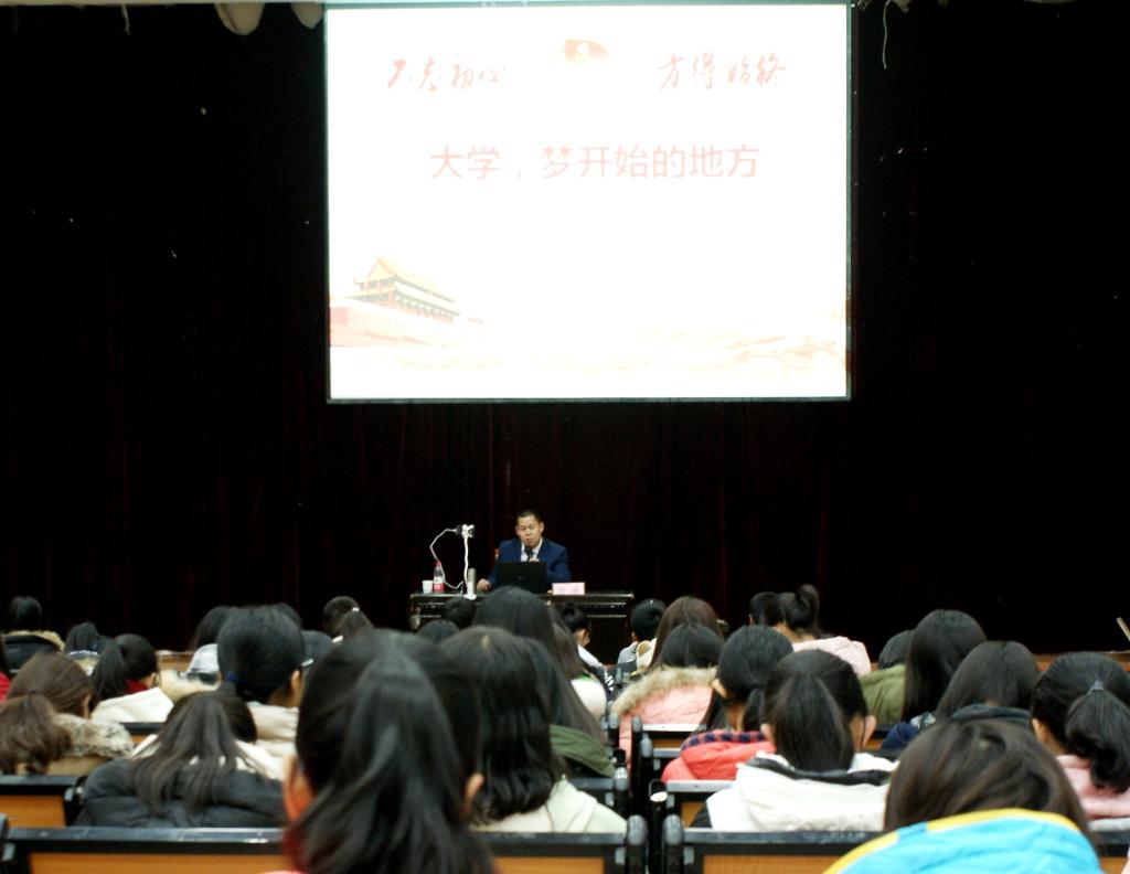 此次讲座以当前大学生活为核心,以过往鲜活事例为佐证,以实现大学梦乃至中国梦为实现背景,从“什么是大学”和“什么是大学生”准确切入,针对“学会堂堂正正做人”、“实现认认真真做事”等内容多方面展开。讲座伊始,闫卓老师赠予同学们自己的书法作品“高瞻远瞩”,借以鞭策同学们在大学中提升自己的高度,用长远的眼光看待问题。紧接着,他从“天、地、人”三个方面向同学们发问,其中,在“人问”环节,他层层深入,运用设问方式,先教导同学们“为中华之崛起而读书”,后渗透教育“孝而文也”的思想,再阐述“梦想+想法+准备+行动=成功”的理论,深刻阐明“人问”和“国以人为本、人以德为本、德以孝为本、君子务本,本立而道生”的道理。随后,他向同学们推荐了《习近平的七年知青岁月》 《人性的弱点》 《周易》 《道德经》等书目,与同学们进行思想上的互动交流。最后,他从警醒篇、心态篇、误区篇、展望篇、学习篇、能力篇、生活篇、综合篇层层递进总结了本次讲座内容,对同学们提出了更高的的要求,号召同学们在大学生活、甚至学业结束以后的生活中牢记“不忘初心、方得始终”的理念,并与同学们共同诵读励志话语。