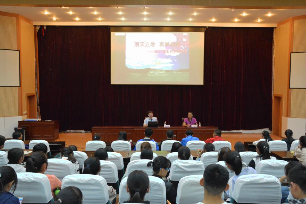 报告会伊始,学院党委副书记吕洪宾简要介绍了此次报告会的主要内容,王成新院长对2017级全体本科新生表示了热烈欢迎,并从“顶天立地,立志做优秀大学生”、“科学安排,合理规划大学生活”及“脚踏实地,再攀人生高峰”方面进行报告。首先,王成新院长从国家要求、时代必然及学院特色三方面讲解了如何“顶天立地,立志做优秀大学生”;并通过介绍古今中外地理学理念的发展与方法创新以及我院各专业培养要求,使同学们在进一步了解专业发展前景的同时意识到创新的重要性。“凡事预则立,不预则废”,在“科学安排、合理规划大学生活”方面,王成新院长为大家总结大学期间需要努力去做的十件事,同时建议大家为四年大学生活做一个“导向性文件”。在“脚踏实地,再攀人生新高峰”方面,王成新院长要求同学们坚持客观条件与主观努力相结合,不仅要有勤奋、执着、创新的精神,更要有敢吃苦、有志向、勇攀登、能拼搏、有毅力、乐奉献的思想觉悟。