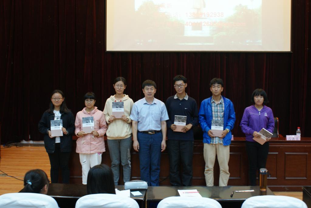 报告内容结束后,在场同学积极提问,踊跃发言,王成新院长一一作出详细解答,并鼓励大家全面发展,不忘初心,砥砺前行。随后,王成新院长将自己所著之书——《结构解读与发展转型——中国城市化综合思辨》作为奖品赠予积极提问的同学并与同学们合影留念。最后,报告会在融洽的氛围中圆满结束。