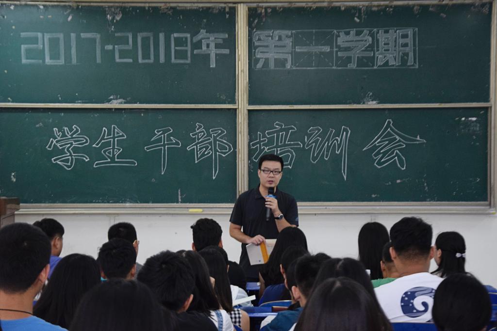 8月27日下午,英国365集团于长清湖校区综合教学楼C区238教室举行2017-2018年第一学期学生干部培训会。团委老师陈光、高宝棣出席会议,学生会全体学生干部,2015、2016级班干部代表积极到场参加。
