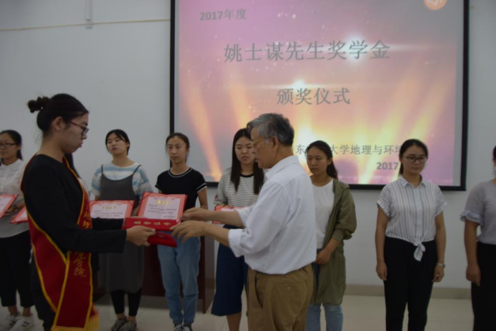 吕洪宾副书记简要介绍了第二届“姚士谋奖学金”的评选原则及评选情况,并宣布获奖名单。姚士谋先生为十位获奖同学颁发了荣誉证书,王成新院长颁发了奖金。姚士谋先生鼓励获得奖学金的同学戒骄戒躁,继续努力,在学习生涯中奋勇向前、愈战愈强,继续树立优秀学子榜样。同时他勉励全院学生,把握青春、刻苦创新,抢抓时代机遇,争创一流。