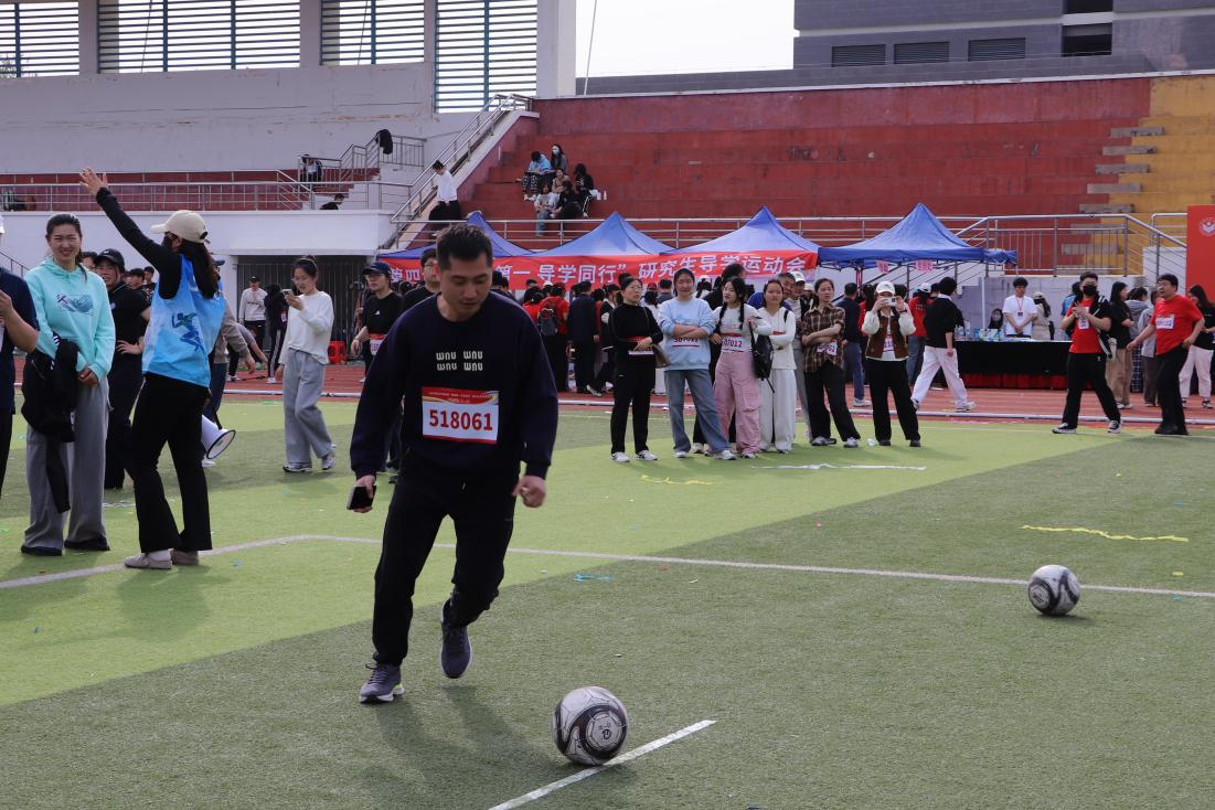 本届运动会精心设置了“九人九足”、“同心击鼓”、“趣味套圈”等多个趣味项目,通过轻松活泼的互动形式,拉近了师生距离,凝聚了导学合力。“勇攀高峰”接力中,师生伸手相握、传递力量,恰似科研道路上的薪火相传;“足球九宫格”比拼中,师生相互鼓劲、精准发力,如同野外考察时的默契协作;“同舟共济”项目中,师生步调一致、彼此扶持,生动彰显出地环人知行合一、携手并进的专业品格。