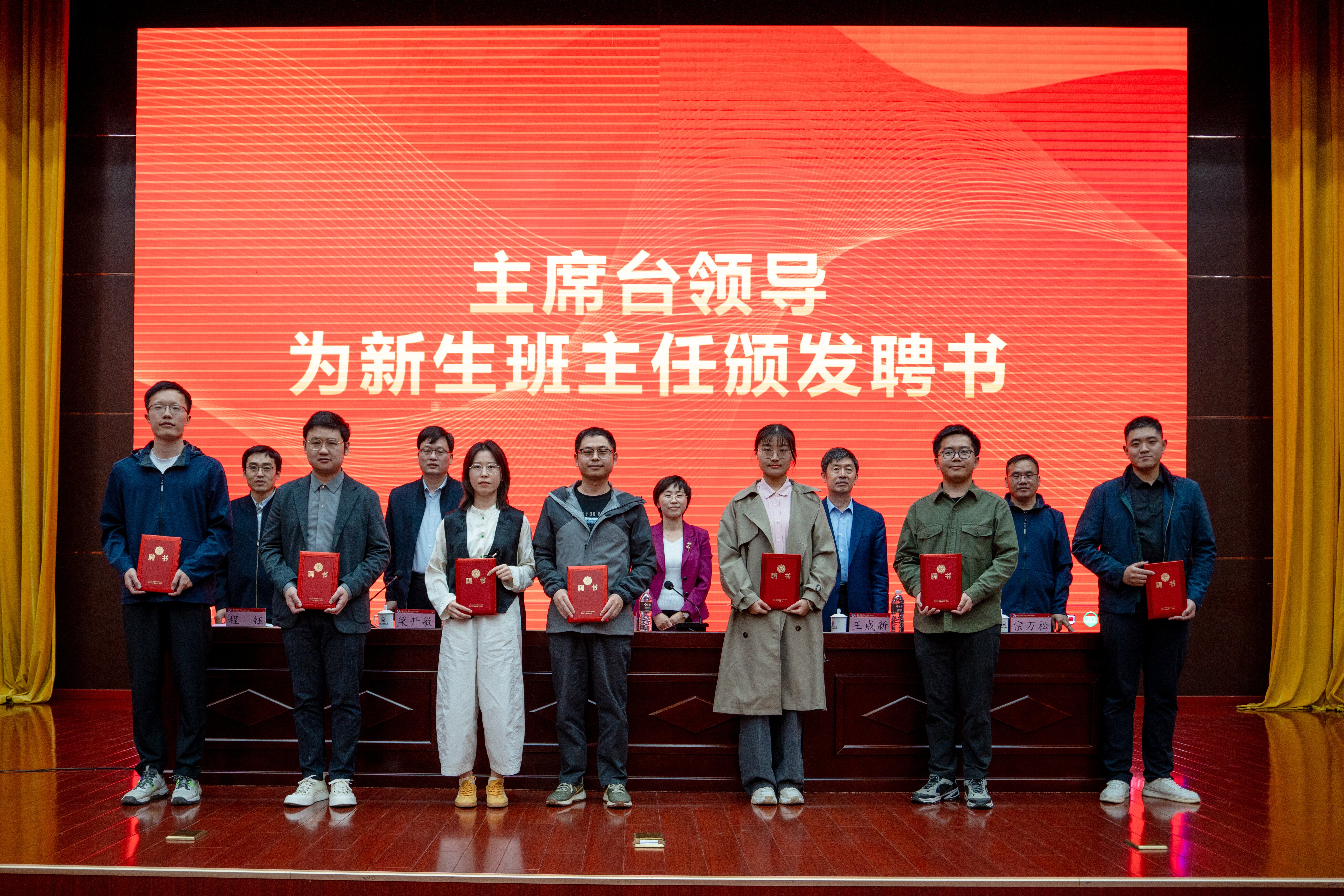 党委书记刘永慧在见面会上宣读了《关于聘任苗毅等八位老师为2024级本科生班主任的决定》,鼓励被聘任的老师认真履行班主任工作职责,积极主动做好班级管理工作,探索科学有效的班级管理方法,不断提高育人水平。领导们为2024级本科生班主任颁发了聘书。