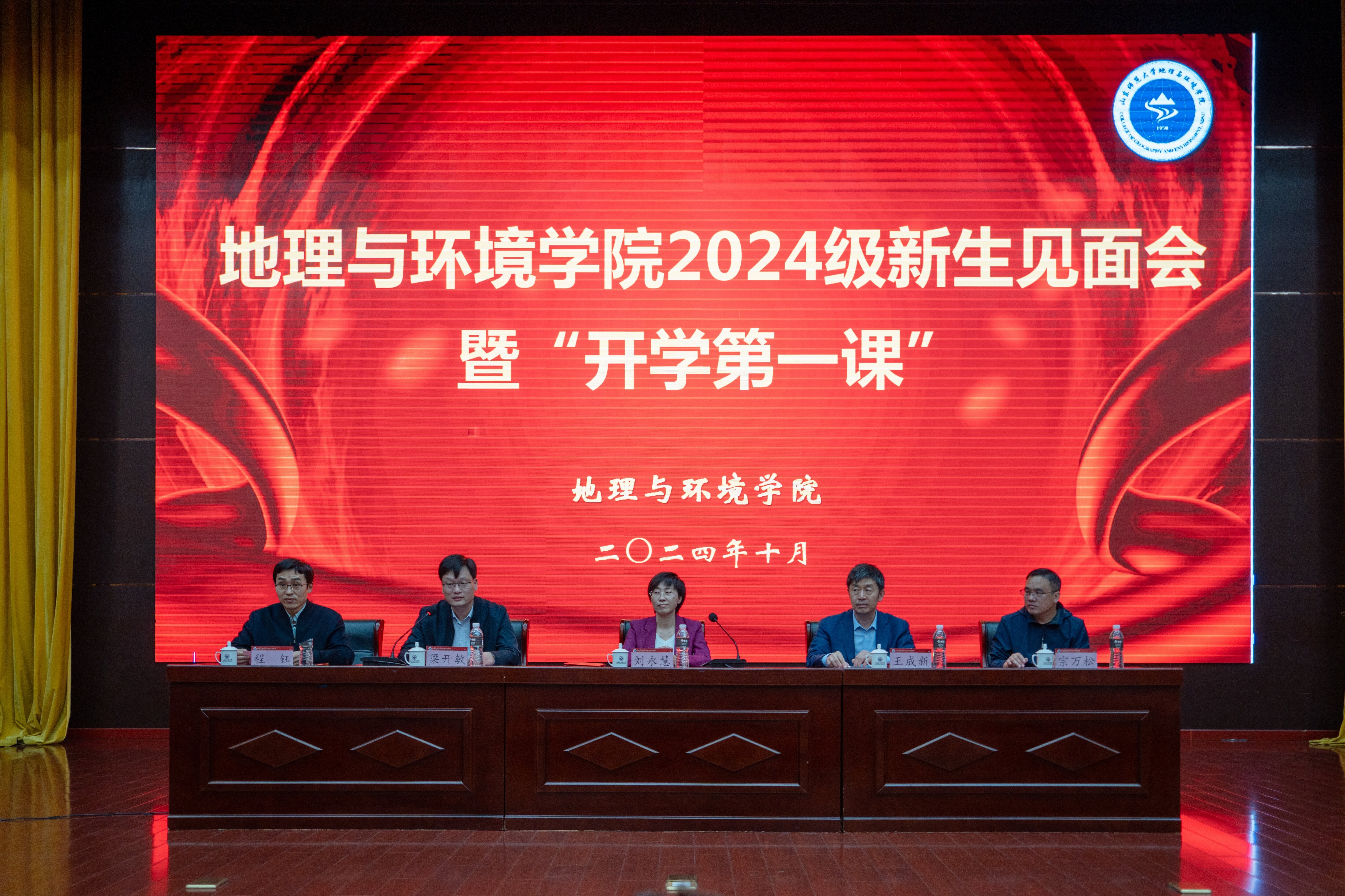 梁开敏首先代表全体教职员工对新同学的到来表示欢迎,向大家介绍了学院办学历史和基本情况,勉励同学们尽快熟悉和适应大学生活。在校生代表、学院原学生会执行主席、地理本2101班团支书李雅琦同学分享了自己大学期间的成长经历,在个人生活、学习成长、实践创新方面对新生提出了建议。新生代表2024级潘翰洋同学表达了对过去的感激和对未来的期待,从思想、学习、生活三个方面提出了今后努力的方向。山东省泰山学者青年专家、地信遥感系副主任尹乐副教授分享了自己求学、工作的经验与感悟,从夯实专业基础,勇于尝试敢于挑战,注重当下三个方面勉励同学们不断提升自我,度过一个充实、有价值的大学生活,走向更广阔的未来。