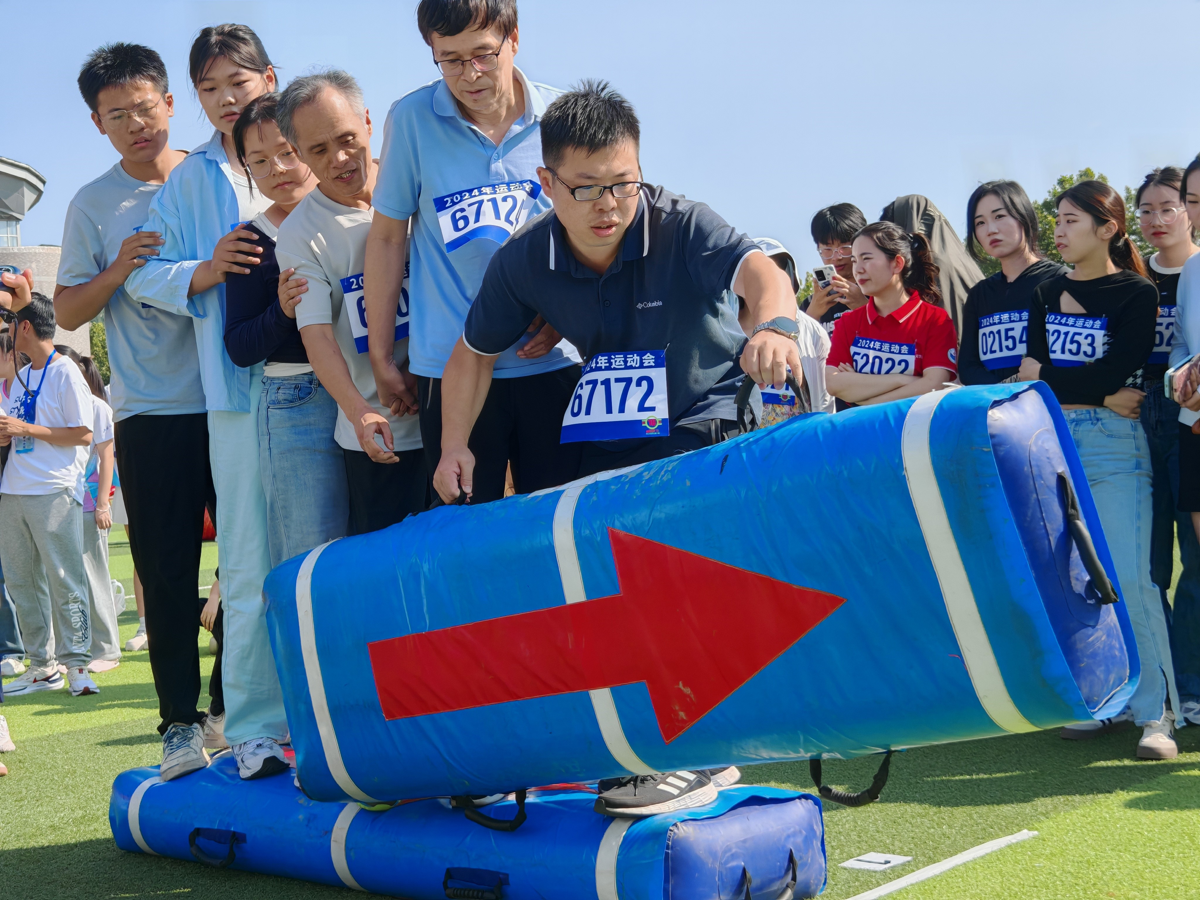 同时,学院在教职工项目上也取得了优异成绩。在教工组男子立定跳远比赛中,我院魏鹏老师取得了第一名的佳绩。在趣味运动项目比赛中,学院师生相互配合、不惧挑战,用坚毅步伐书写了“师生同心”的坚实力量。运动员的精彩表现令观众席上掌声雷动,声声助威呐喊彰显了学院良好的精神风貌。