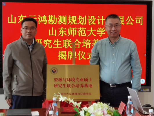 4月30日下午,英国365集团-山东元鸿勘测规划设计有限公司研究生联合培养基地揭牌与合作导师聘任仪式在山东元鸿勘测规划设计有限公司举行。副院长宗万松,减灾与应急管理研究院院长吴泉源,地信遥感系主任张焕雪,资源与环境专业硕士点负责人乔建民,学位点导师王安乾,山东元鸿勘测规划有限公司董事长徐东雷,副总经理范明强、刘伟、张爱艳,地理信息部部长倪元龙等出席会议。