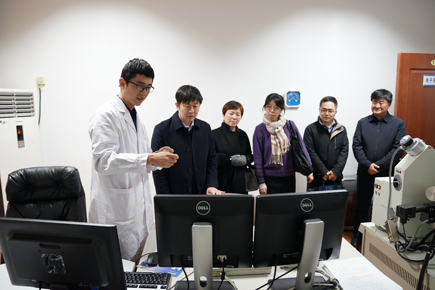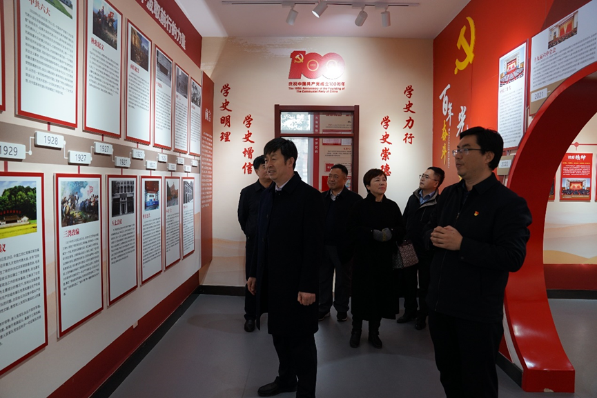 王成新一行参观了省部级重点实验室、离子探针中心、智慧党建云平台、职工文化活动中心和荣誉室。