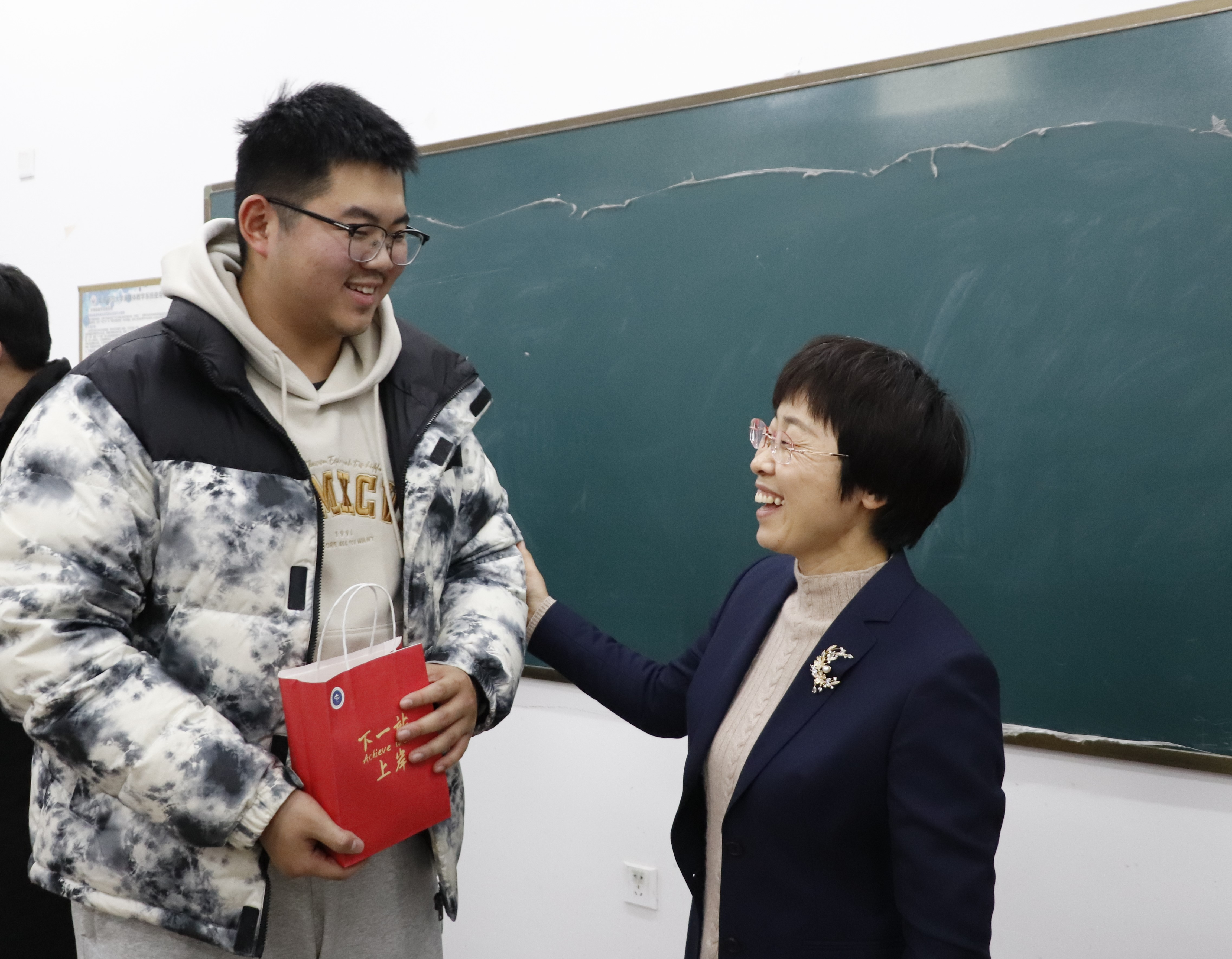 学院特别准备了“下一站上岸”礼包,其中有代表“苹”安上岸的苹果、“牛”气冲天的牛奶、“力”攀高峰的巧克力,以及满载着老师们真挚祝福的明信片等寓意满满的小礼品。这些充满祝福与关怀的小礼品和热切关心的话语,让同学们倍感温暖,他们纷纷表示一定不辜负老师的谆谆教导和殷切期盼,以更加饱满的热情投入到最后的备考冲刺中去,争取以优异的成绩为学院增光添彩。