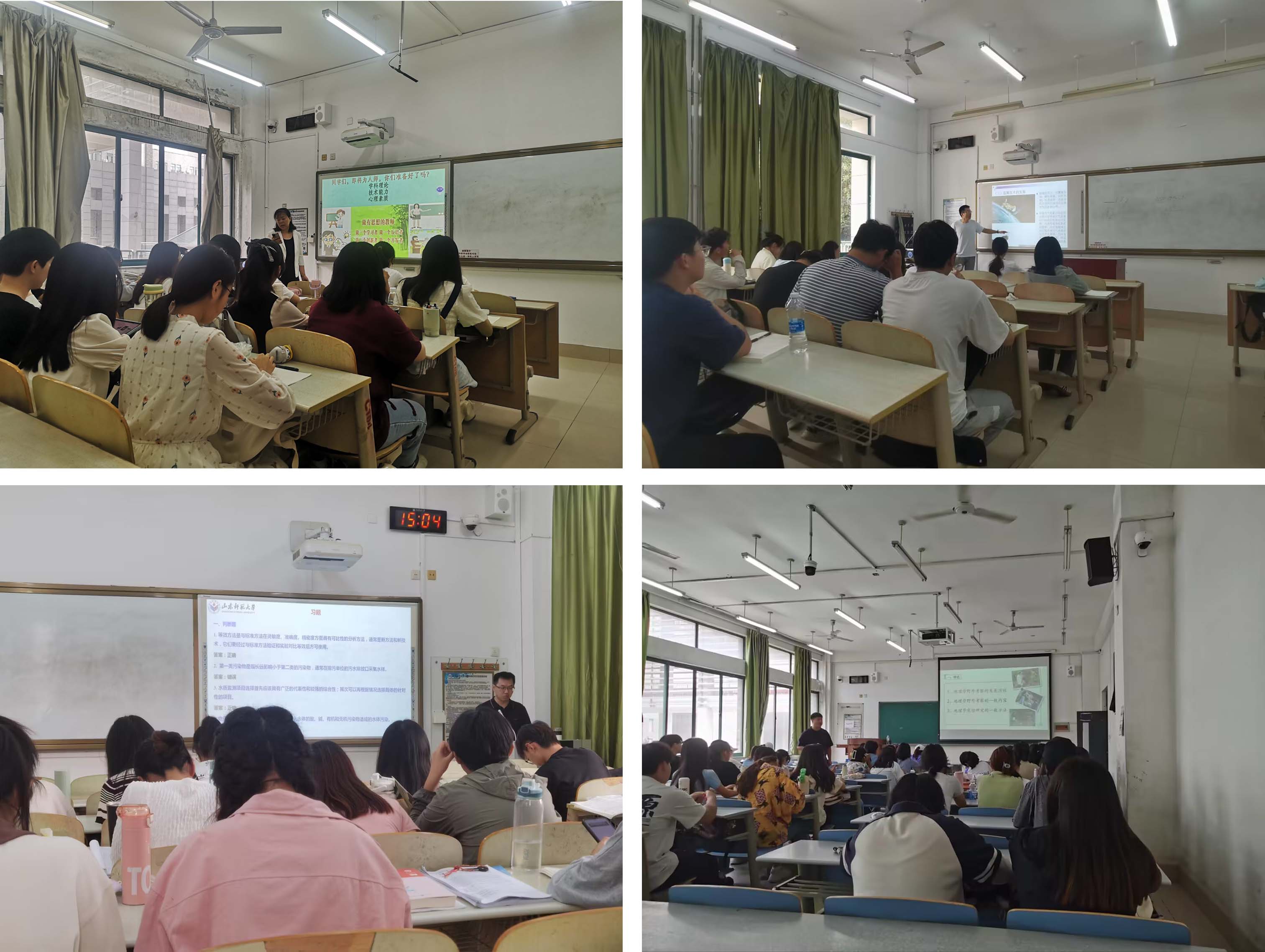 本次督导工作以线上线下结合听课的方式开展,共听取地理多媒体课件设计、地理野外工作方法、JAVA语言程序设计、环境工程学等12门课程。听课结束后,教学督导组成员及学院领导充分利用课间与15位任课教师进行了面对面或线上形式的反馈和评价,针对听课过程中发现的不足和有待优化改进的问题,教学督导组和学院领导进行了深入分析并给出了建设性的意见和建议,帮助任课教师明确了改进和提升教学的目标和方向。