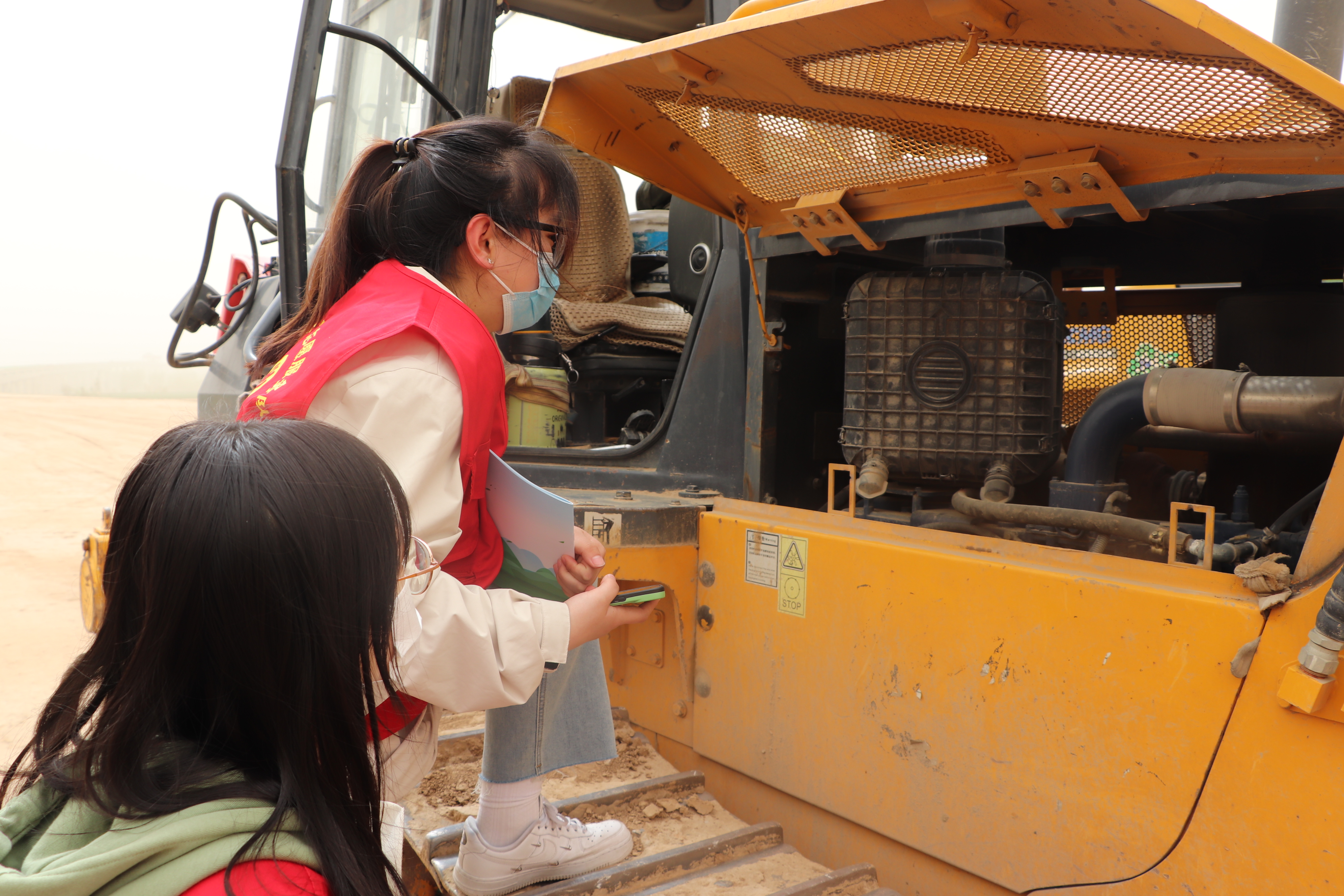 随后,志愿服务队来到东阿黄河大桥工程项目现场,对非道路移动机械信息编码登记、排气污染达标情况进行帮扶检查,帮助施工单位发现、解决了相关问题并提供了对应的环保建议,为推动大桥顺利施工做出了科学指导。