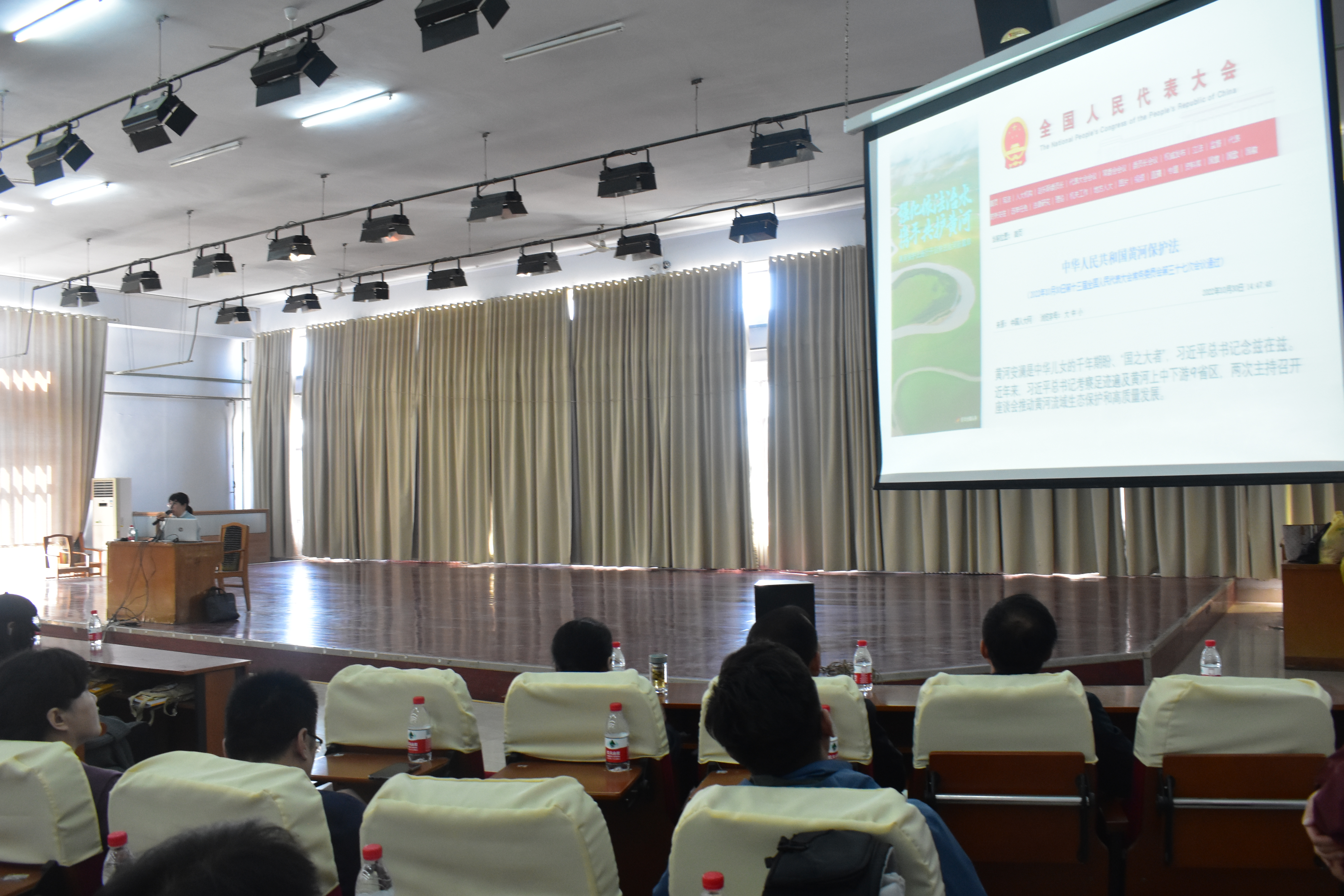 在德州学院,张英以《黄河价值几何?》为题,为师生带来了一场关于黄河生态文化科普的专题讲座,她以“绿水青山就是金山银山”这一重要论断和最新颁布的《中华人民共和国黄河保护法》为切入点,引发大家对于“母亲河”生态价值、文化价值、经济价值的思考,接着从黄河三角洲的科研价值、旅游资源、文化传承与保护等多个方面探讨黄河流域的丰富资源,最后落点到守护黄河生态的重要意义。宣讲过程生动形象,通过图文并茂的形式,引导大家积极参与黄河生态保护。