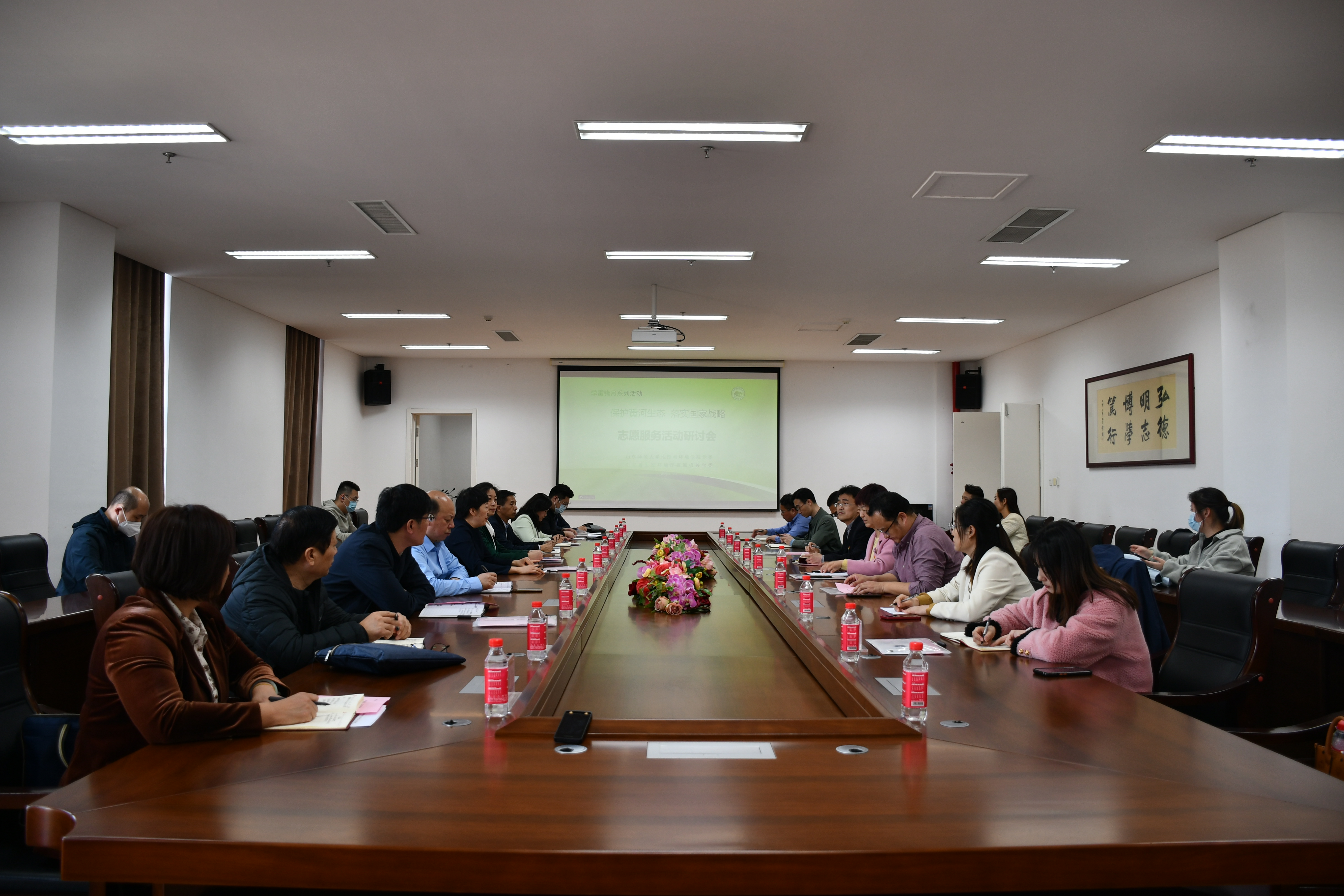 第二阶段为志愿服务研讨座谈会,研讨会由钟秀芳主持。与会人员分别就自己的专业领域和工作实际谈了自身的下一步规划和有关志愿服务推进的工作设想;研讨中一致认为“守护黄河生态”志愿服务队积极推动了全民环保意识,是一场极具教育意义和社会意义的绿色文明创新传播方式;大家纷纷表示,未来一定依托“守护黄河生态”志愿服务队,进一步赓续好雷锋精神,将学雷锋融入平常、化作经常,更好地为省内生态环境保护贡献志愿服务力量。双方一致表示要发挥自身优势,增加志愿者数量,提升志愿服务质量,争创志愿服务品牌。