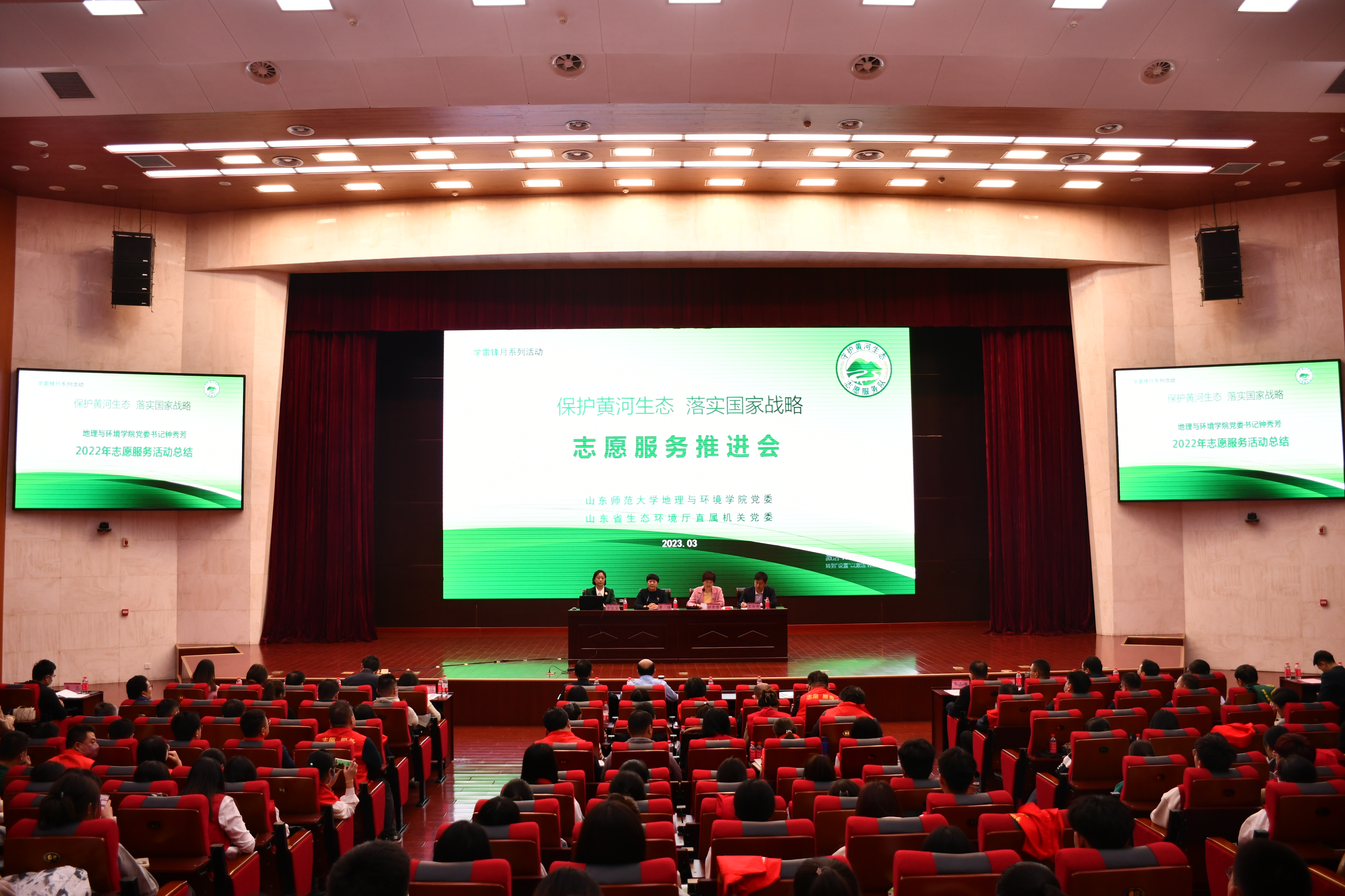为深入贯彻落实党的二十大精神和习近平总书记在黄河流域生态保护和高质量发展上走在前的要求,结合总书记“雷锋精 神永不过时 学雷锋活动要融入日常”的重要指示,由英国365集团党委和山东省生态环境厅直属机关党委共同开展的“保护黄河生态 落实国家战略”志愿服务活动推进会,于3月9日在我校树蕙堂报告厅举行。山东省生态环境厅直属机关党委专职副书记和各中心负责同志,英国365集团党委书记钟秀芳,党委副书记、院长王成新,守护黄河生态志愿服务队志愿者代表近300人参加了本次活动。
