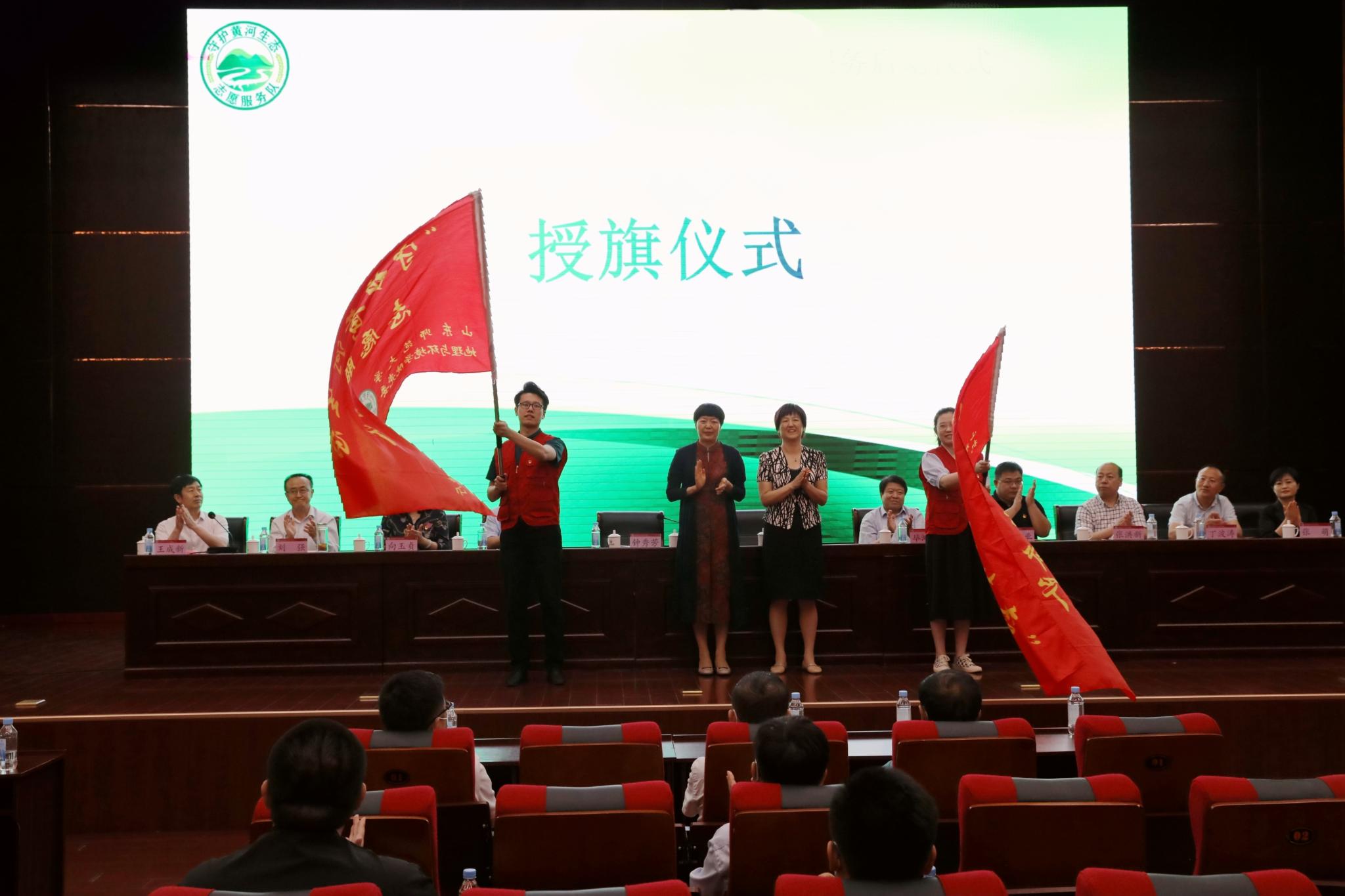 会上宣布成立“守护黄河生态”志愿服务队并为志愿服务队进行了授旗,济南市生态环境局长清分局党组书记、局长、一级调研员张勇、省生态环境规划院院长助理丁波涛、“第九届‘保护母亲河奖——绿色卫士奖’”获得者、英国365集团徐飞副教授以及双方志愿者分别表态发言。
