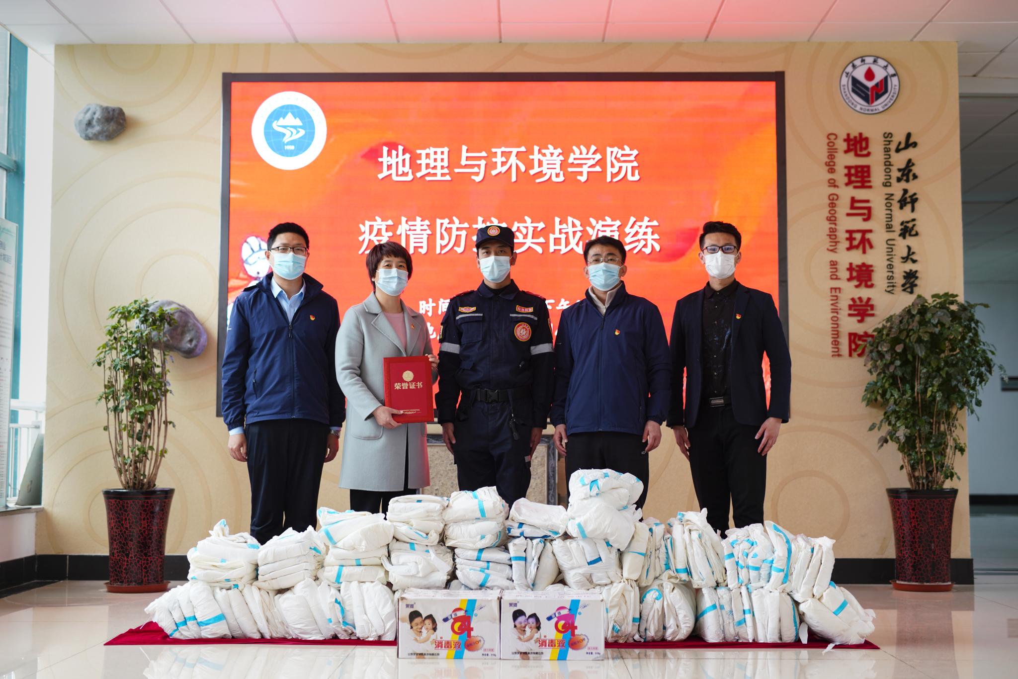 自省内多地疫情发生之后,学院高度重视,未雨绸缪,多次通过党政联席会调度疫情防控相关工作,筹划购买、储备防疫物资,并积极联络社会公益组织、爱心企业为学院疫情防控夯实物质基础。其中,联系到济南黎暮应急救援大队,向学院捐赠了防护服、防护面罩、消毒液等防疫物资,并采用专业设备为学院办公区域进行了一次全面消杀。学院同时开展疫情防控应急演练,通过演练室内发热人员的发现与报告、留观区应急处置、发热人员转运、现场安全管控与消杀等多个应急处置步骤及措施,使学院疫情防控指挥部全体人员熟知学生发热应急处置流程。学院负责人对师生掌握山东省教育厅和学校“四个一律”管控措施了解情况进行抽测提问,不仅为日后应急处置提供了范例和模板,全面检验了学院疫情防控应急处置和组织协调能力,为学院应对突发疫情科学精准处置积累了实战经验,也为常态化疫情防控增添了信心。