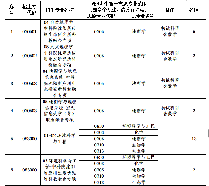 自然地理学(中科院沈阳应用生态研究所科教融合专项) | 070501 | 现场复试 |