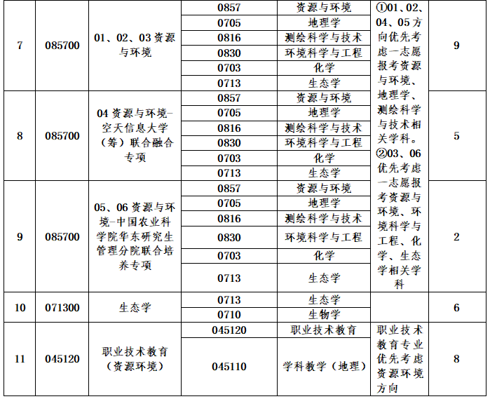 资源与环境(01地理信息系统工程、02测绘工程、04空天信息大学(筹)联合培养专项、05中国农业科学院华东研究生管理分院联合培养专项(地信方向)) | 085700 | 现场复试 |