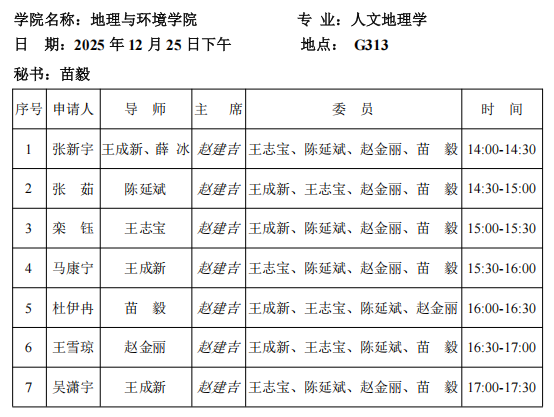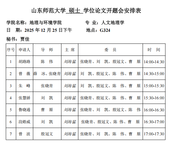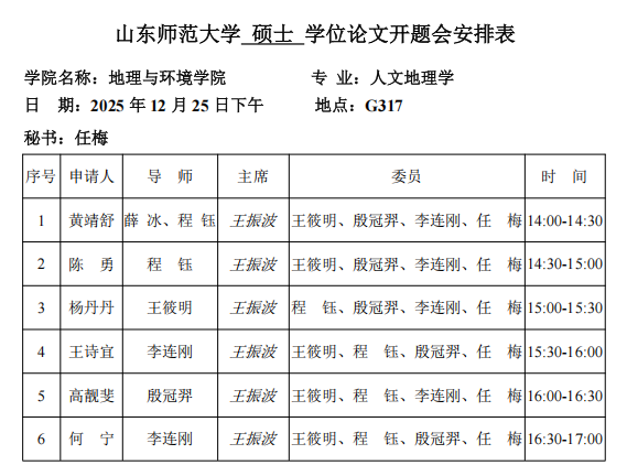 2024级自然地理学专业硕士研究生学位论文开题安排2025.12.27