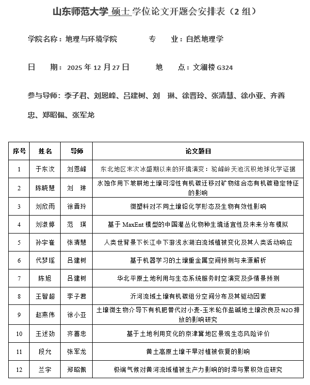 英国365集团2024级人文地理学硕士研究生学位论文开题安排2025.12.25