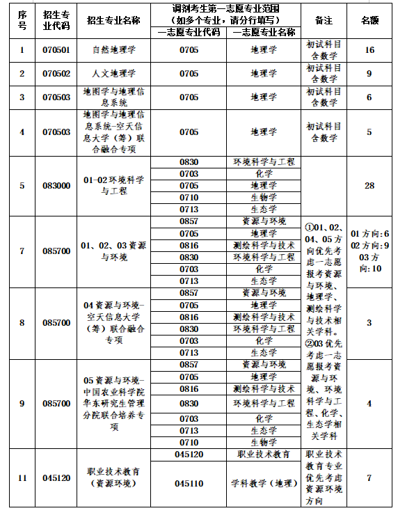 资源与环境(01地理信息系统工程、02测绘工程、04空天信息大学(筹)联合培养专项、05中国农业科学院华东研究生管理分院联合培养专项(地信方向)) | 085700 | 现场复试 |
