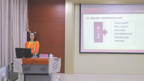 为深入学习贯彻党的二十届三中全会精神,教育引导广大党员干部、师生员工自觉把思想和行动统一到全会精神上来,最大限度凝聚改革攻坚共识、激发改革活力,推动各项改革举措精准落地、取得实效。9月25日,校党委常委、统战部部长、人才工作办公室主任李梦遥来到学院进行题为《学习贯彻党的二十届三中全会精神 凝心聚力攻坚冲刺一流》的宣讲。学院党委书记刘永慧、党委副书记、纪委书记梁开敏、副院长程钰等参加宣讲,师生党员100余人到场聆听,现场学习氛围浓厚。