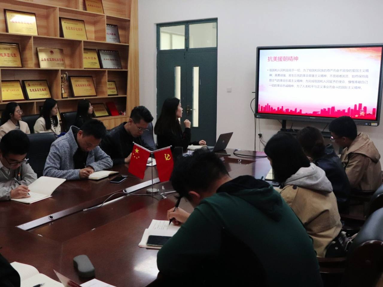 为继承和弘扬抗美援朝精神,凝聚为中华民族伟大复兴接续奋斗的强大力量,激励支部党员厚植爱国情怀,10月30日,我院研究生三支部深入贯彻落实中央办公厅有关通知精神,配合中央有关活动部署,积极响应校团委关于“开展纪念抗美援朝70周年主题教育活动”的有关要求,于文澜楼G313会议室开展了主题为“学习抗美援朝精神,争做奋斗时代新人”的主题党日活动。支部组织委员韩诗担任主讲人,支部全体党员及入党积极分子共同参加了本次学习交流。
