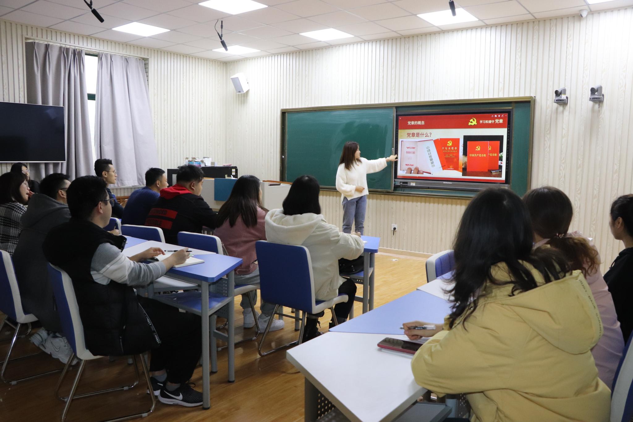 活动开始,乔心如从“《中国共产党章程》的概述”、“《中国共产党章程》的沿革历史”和“新时代青年党员如何学习和遵守《中国共产党章程》”三个方面,系统地讲述了《中国共产党章程》发展的历史脉络,结合总书记对学习《中国共产党章程》的四点要求,号召支部党员自觉学习、遵守、贯彻、维护《中国共产党章程》内容,并通过学习《中国共产党章程》的沿革历史从而加深对于党史的学习和思考。支部书记欧阳德龙在总结时强调,《中国共产党章程》的沿革从一定程度上见证了党的发展历史,梳理学习各个时期《中国共产党章程》删减、增添内容有助于青年党员充分了解我们伟大的党自我革新的勇气与魄力,并借此机会加强对党史的学习,从而达到“学史明理,学史增信,学史崇德,学史力行”的学习效果。