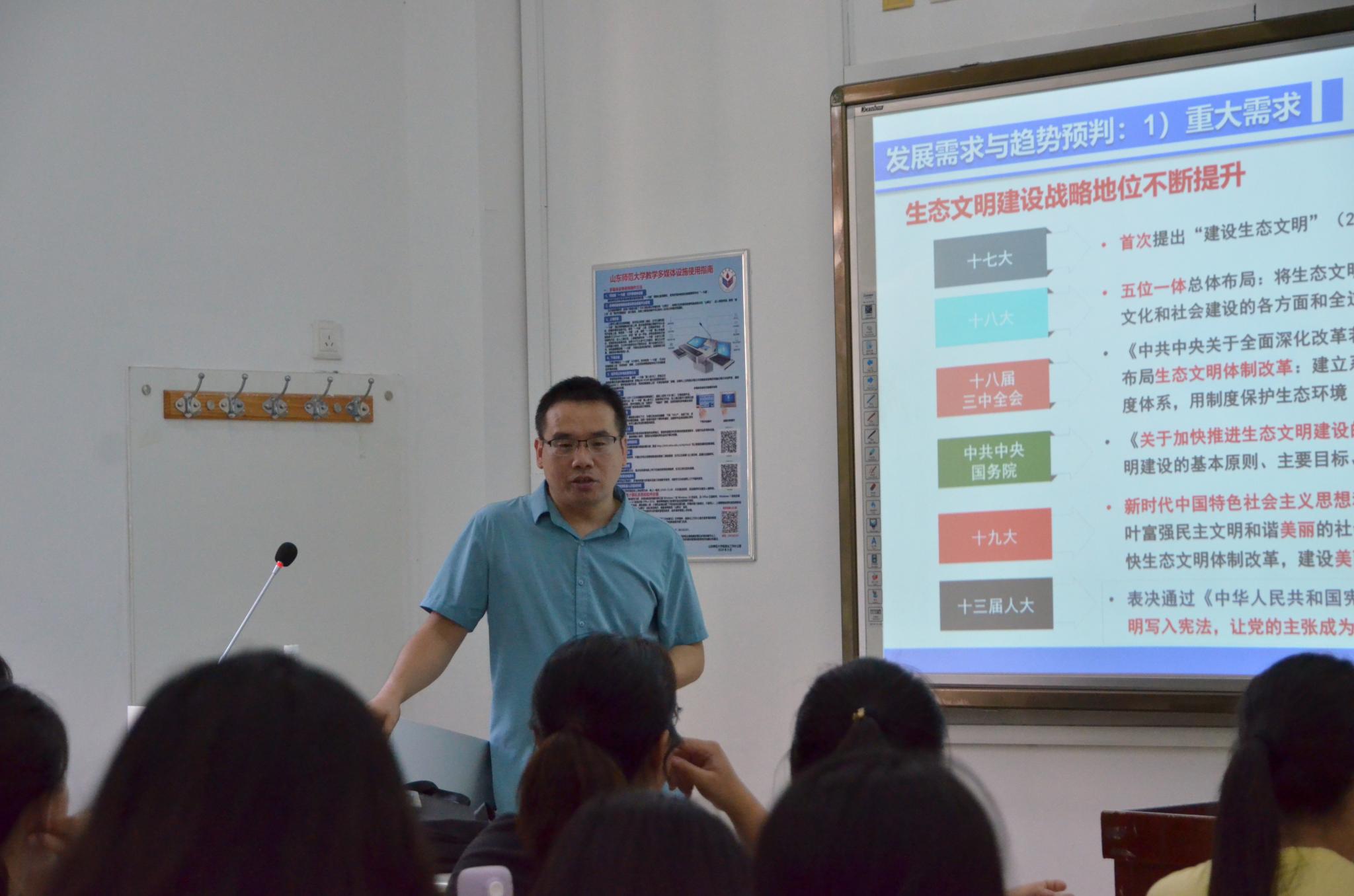 宗万松从专业战略发展的角度出发,围绕环境科学专业的“专业概况与发展沿革”、“发展需求与趋势预判”、“质量标准与培养模式”、“发展战略和改革方向”四方面内容进行介绍。他重点阐释了专业发展的重点趋势和学生培养的主要方向,并结合环保有关项目,将其具体到环境科学专业就业方面。他希望自己的介绍能够帮助同学们确定个人的发展方向,也鼓励同学们走向更高的平台,将实现小我与国家建设结合起来,为中华民族的伟大复兴努力奋斗。