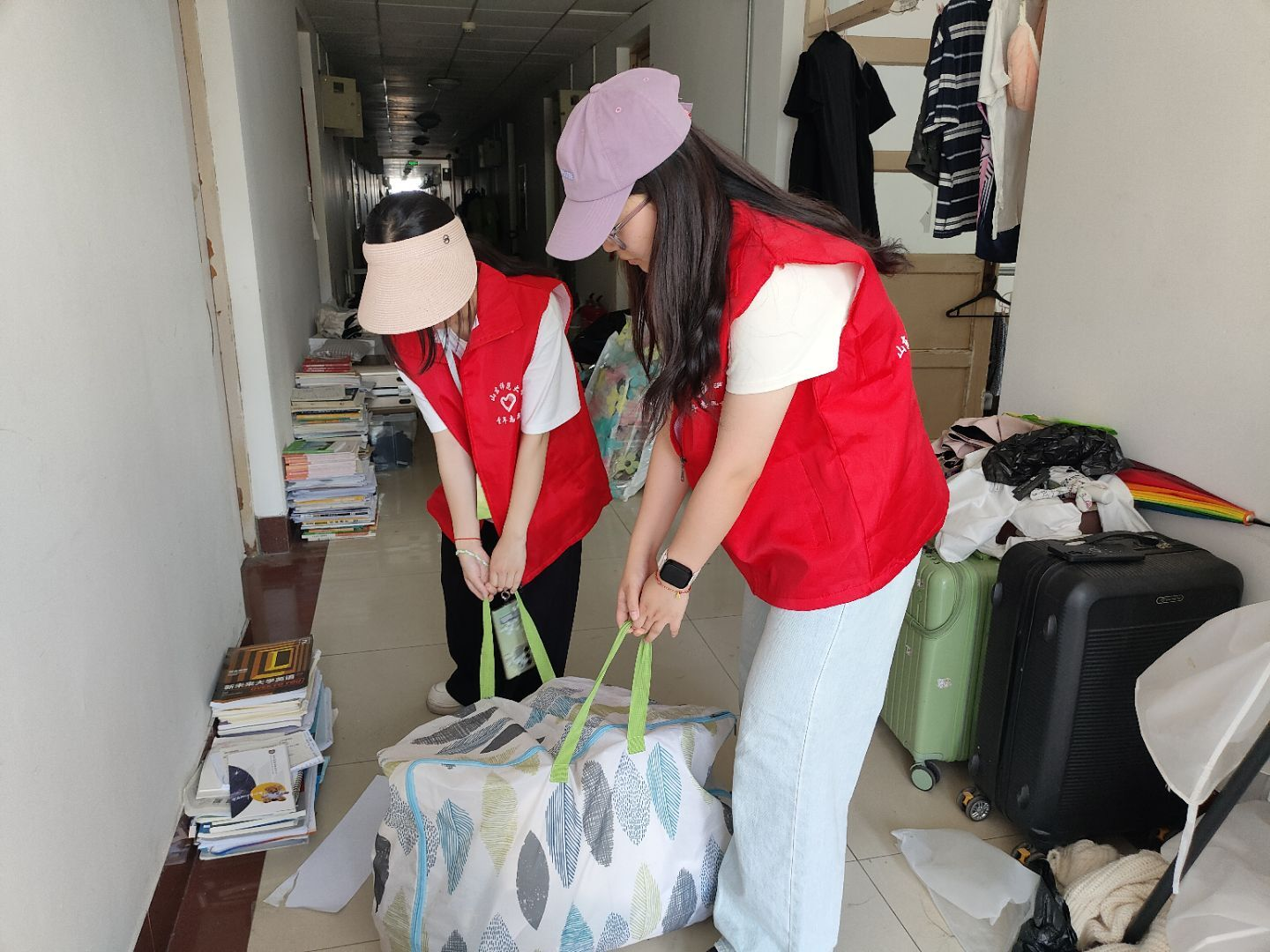 活动现场,党员志愿者们身穿统一志愿服,热情细致地为同学们提供帮助。他们有的协助室友和隔壁宿舍的同学打包行李,细心整理书籍、衣物;有的主动帮忙搬运重物,往返于楼道和快递点之间,即使汗流浃背也毫无怨言。此外,他们还耐心解答同学们关于离校手续、档案转接等问题,及时传达学校的有关规定和要求,为同年级同学提供清晰的指引。