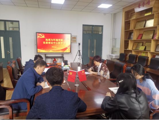 会上学生党支部书记唐永超和党委组织员范媛媛领学相关内容,党委委员宗万松,党支部书记孔强、刘恩峰和高宝棣,围绕学习贯彻习近平主席两个重要讲话精神进行专题交流发言,其他人员自由发言。