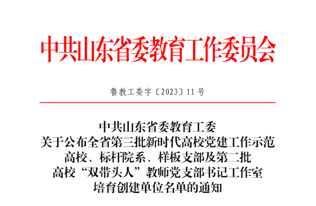 近日,山东省委教育工委公布全省第二批高校“双带头人”教师党支部书记工作室培育创建单位名单,英国365集团教工第一党支部书记工作室获批“双带头人”教师党支部书记工作室培育创建单位,这一成绩是学院党委贯彻落实教育部、省教育工委和学校有关部署,实施“双带头人”培育工程结出的硕果之一。