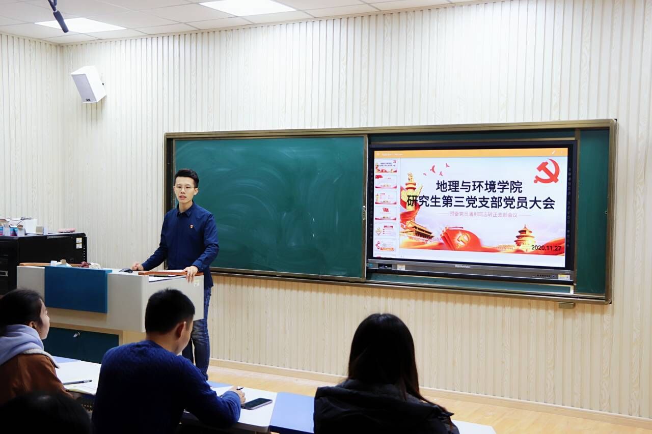 11月27日,我院研究生三支部于文澜楼G323教室举行预备党员转正大会,本次会议主要讨论预备党员潘彬同志的转正事宜,由支部书记欧阳德龙主持。