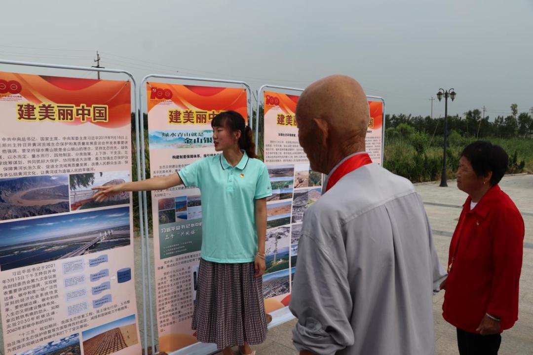 本次暑期社会实践宣讲队员在东营市垦利区郝家镇孟家村、东营区钻井南社区、东营市胜利第一中学等多地开展了形式多样的宣讲活动。在实践活动前期,实践队员系统学习了百年党史中重要的发展成就,结合学院师生党员制作的“学百年党史 看发展成就 建美丽中国”图文展板,以历史脉络和时间节点为主线,以地图的形式展现了我们党自1921年诞生以来的重大历史事件;运用图文并茂的形式,宣讲了建党百年来我国从政治、经济、改革、抗击新冠疫情等9个方面取得的伟大成就;以及十八大以来,中国共产党坚定贯彻“绿水青山就是金山银山”的理念,通过构建制度保障体系,把中国建设成了一个更美丽国家的发展历程。学院党委书记钟秀芳表示:“学院党委始终坚持党建带团建,今年暑期将党史学习教育和大学生暑期社会实践紧密结合,对党史、习近平‘七一’重要讲话精神和生态文明思想的宣讲与助力乡村振兴有效融合,聚力推动“学、悟、研、宣、用”相结合,实现育人成效和社会效果的有机统一。”