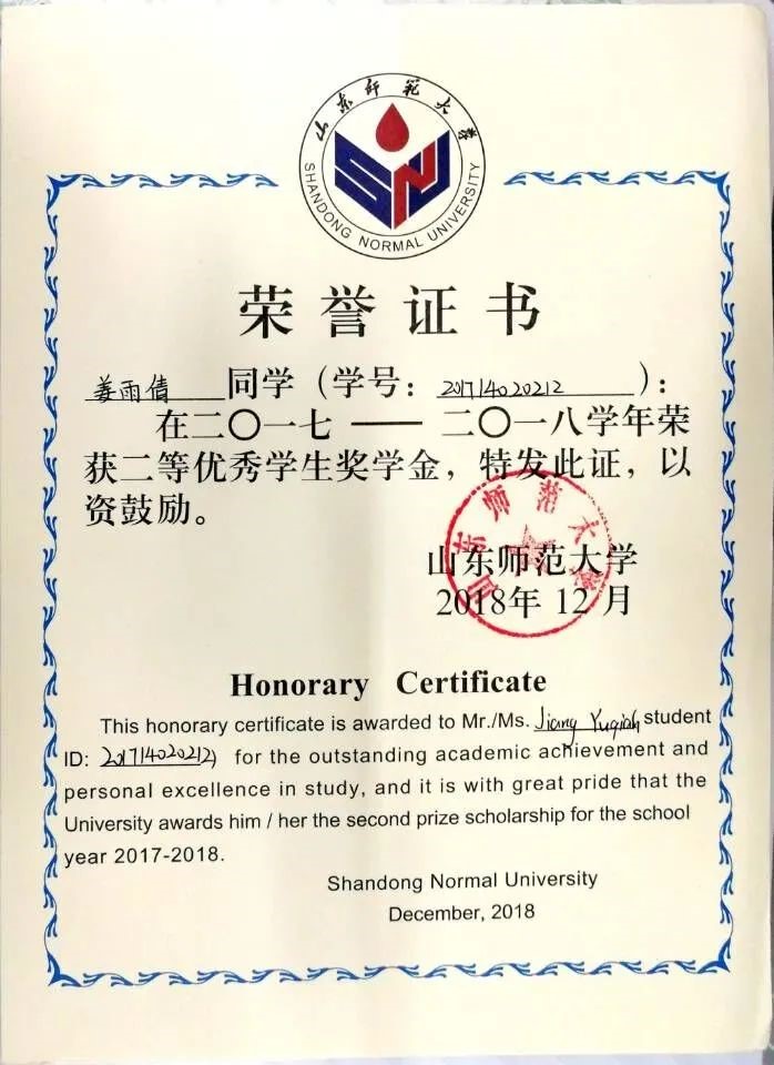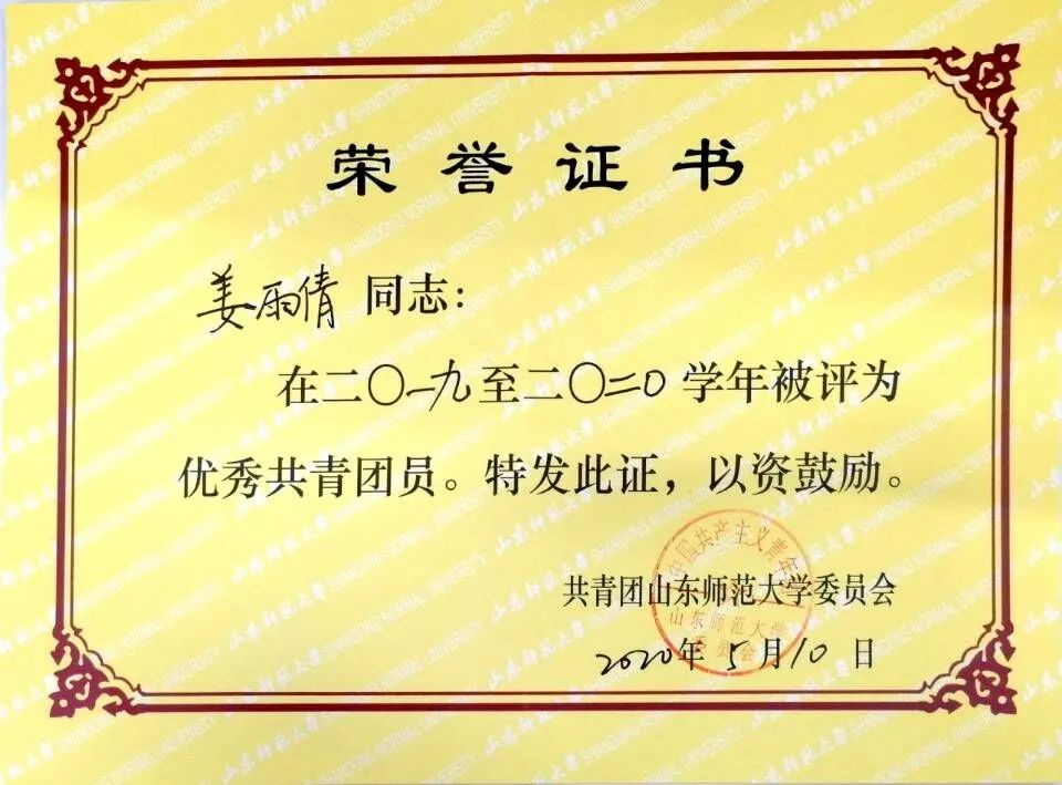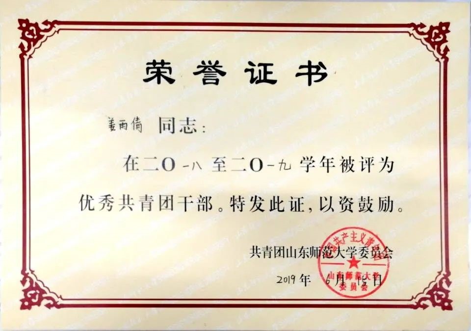 本科期间多次获优秀学生二等奖学金,荣获优秀共青团干部,优秀共青团员称号。参与作品《The influence path of population characteristics on public acceptance towards waste-to-energy incineration project,based on structural equation model》在第十二届山东省大学生科技节——山东省大学生环保科普创意大赛中,荣获(论文报告类)三等奖。