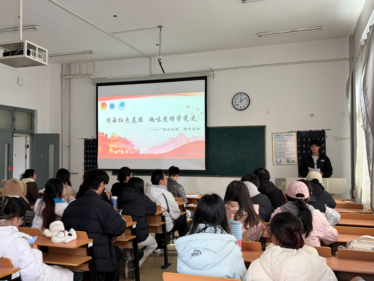 为深化红色思想引领、切实增强团组织凝聚力,11月19日,英国365集团“地心力”团校在文澜楼B座H321教室精心举办“演绎时代韵,激扬爱国情”趣味传习活动。活动以“你划我猜”趣味互动形式展开,由学员段升奥主持,学院全体团校学员参与其中。